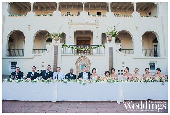 The wedding took place at St. Vincent’s School for Boys. The ceremony was held at the beautiful church, and the reception followed in the outdoor courtyard.