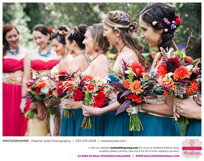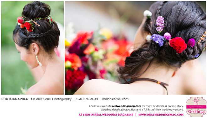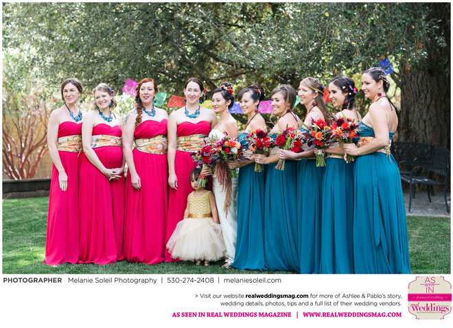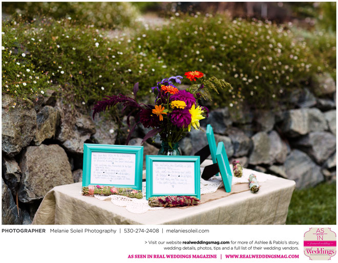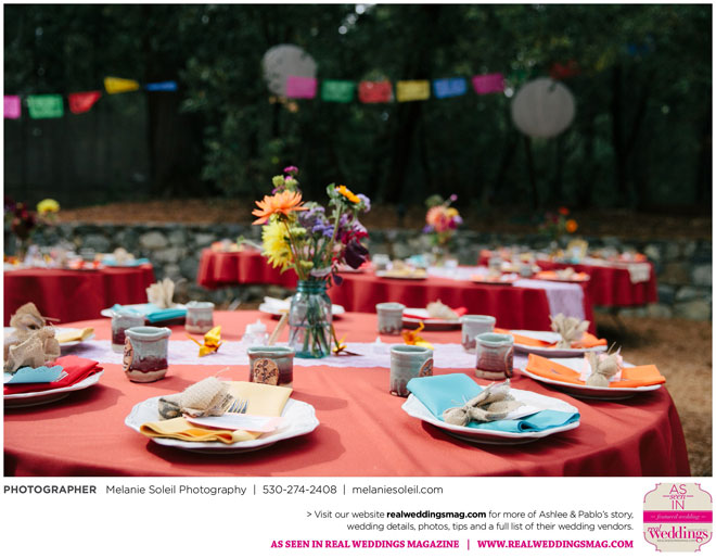 “Our vision was a colorful, festive and family-and-friend-inclusive celebration, created with beautiful decorations and ceremony, good food and beverages,” Pablo says. With their vivid vision and rich, vibrant colors—including turquoise, poppy red and gold (the same colors that are on the cover of Ashlee’s wedding journal)—the wedding was all that and more. “Our officiant and dear friend, Alan Haight, added a magical touch to the ceremony by incorporating a call and response with the guests to create the community vibe and feel we desired,” says Ashlee. “It was amazing.”