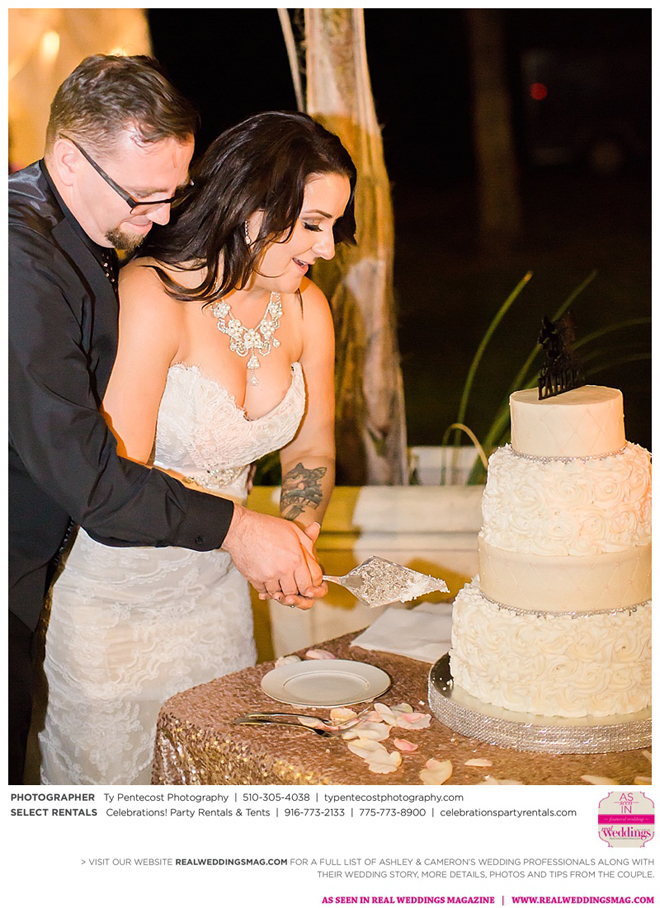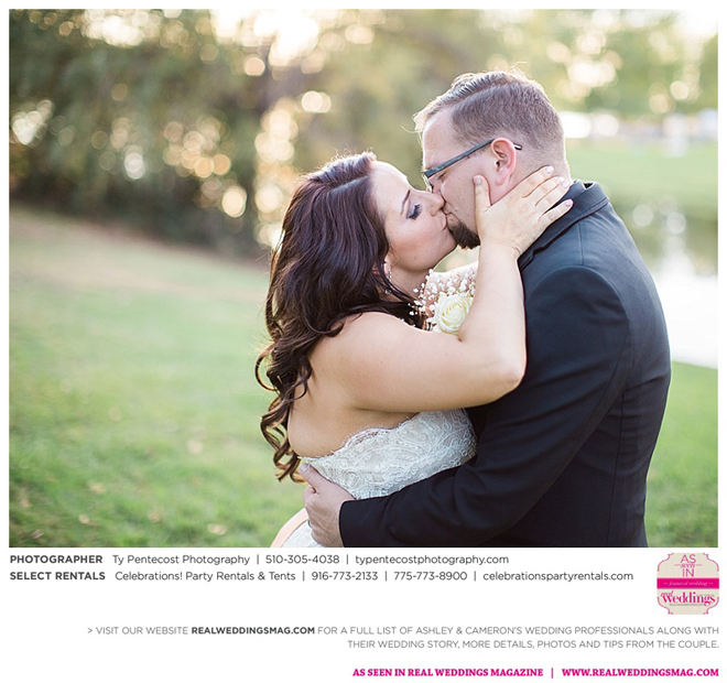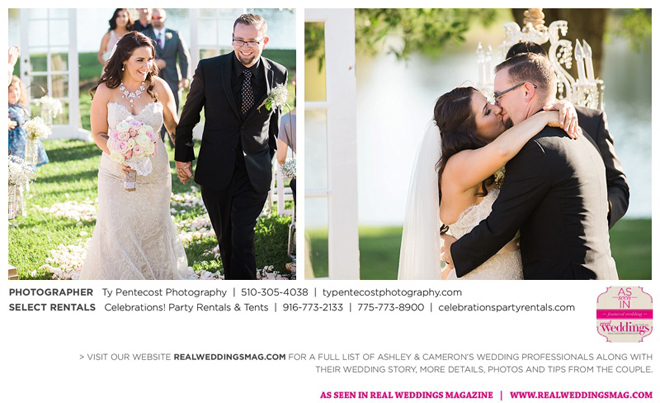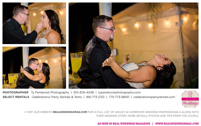 Before their “I dos,” Cameron and Bella (Ashley’s daughter) were united in a special ceremony that left the whole crowd teary-eyed. After the nuptials, the celebrations spilled out onto the shores of the lake and the outdoor gazebo. “It was my perfect ‘dream wedding’ come true; a few bumps here and there, but they worked themselves out—just like our relationship,” says Ashley contentedly.