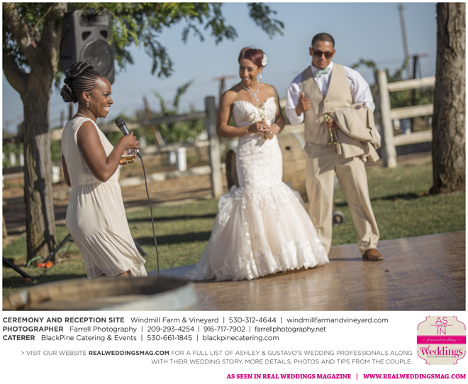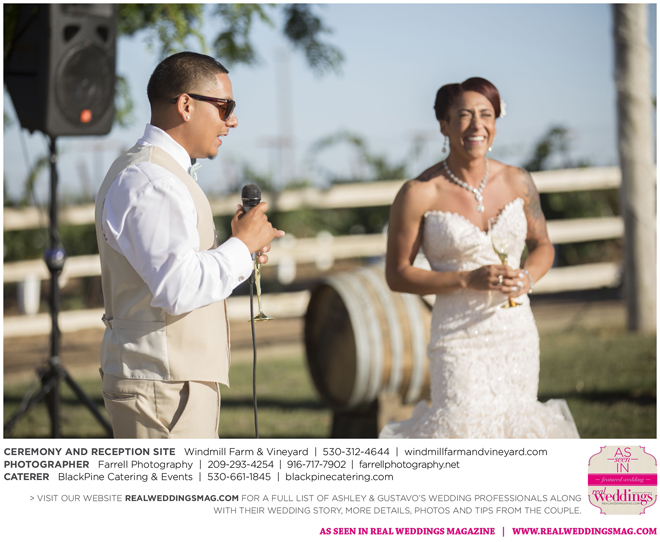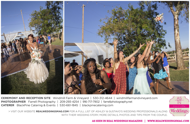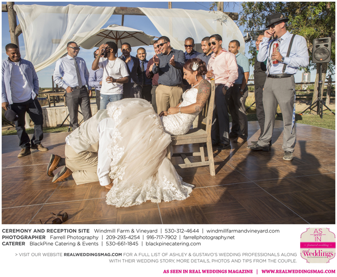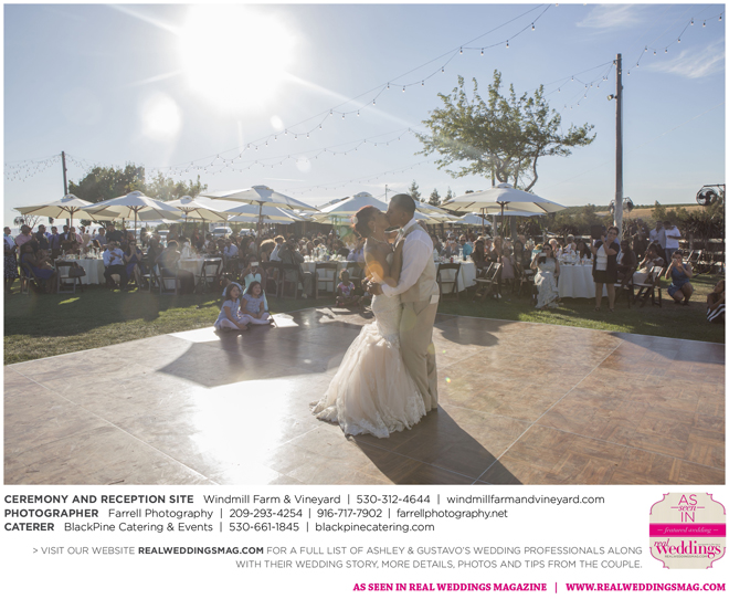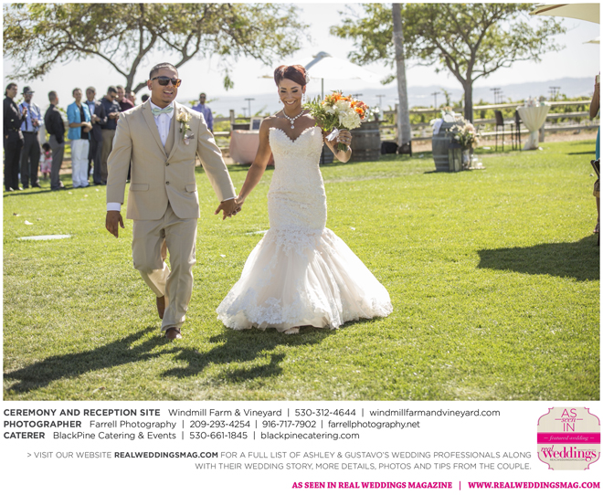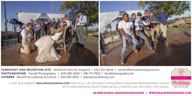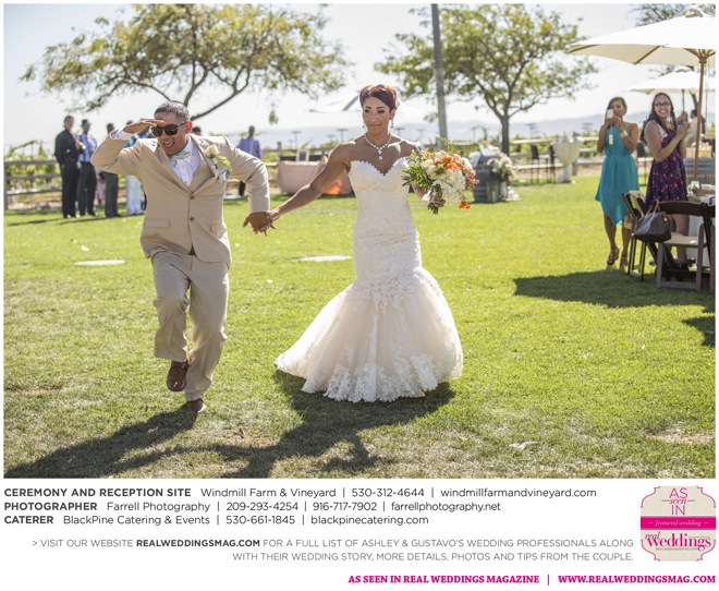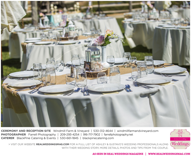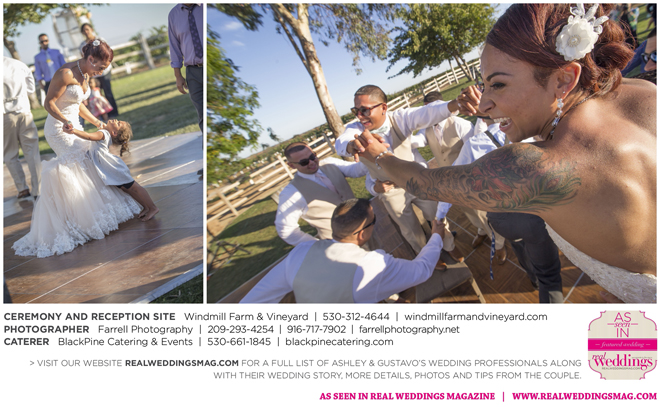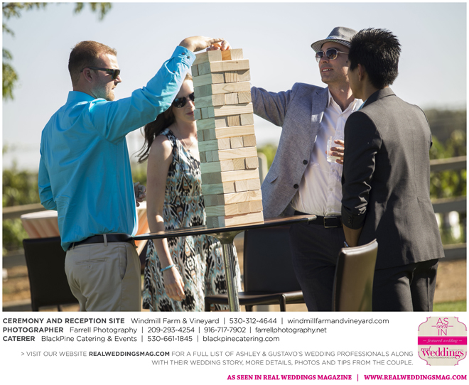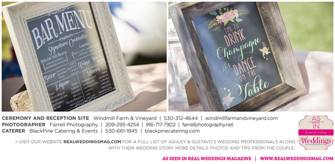Both the ceremony and reception were held outdoors at the Windmill Farm and Vineyard in Woodland on the beautiful, large grass area. “For weeks after, and still to this day, those who attended tell us our wedding was one of the best and most memorable weddings they’ve ever been to,” says Ashley. “I kid you not, it turned out exactly how we hoped it would. It was the most fun we’ve ever had—hands down. I don’t think we’ll ever be able to top that party.”