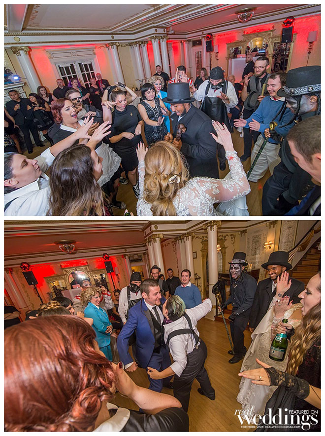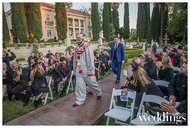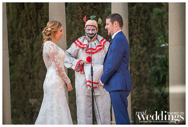 The American Horror Story theme song played to start the wedding. The officiant, dressed as Twisty the Clown, led the way with Jordan. The wedding party followed.