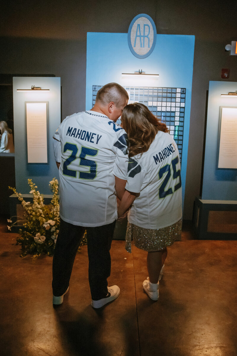 We got engaged on Thanksgiving Day in 2023, in Seattle, WA, right on the Seattle Seahawks football field. We had field passes before the game, and while we were taking it all in, he surprised me with the most unforgettable proposal. With the energy of the stadium around us and with holiday season, everything just paused for a second — and our next chapter began right there. What made the moment even more special was that the game was Seahawks versus Niners. My dad, who has passed back in 2018, was a lifelong 49ers fan, and being there felt like he was with us, sharing in the celebration.