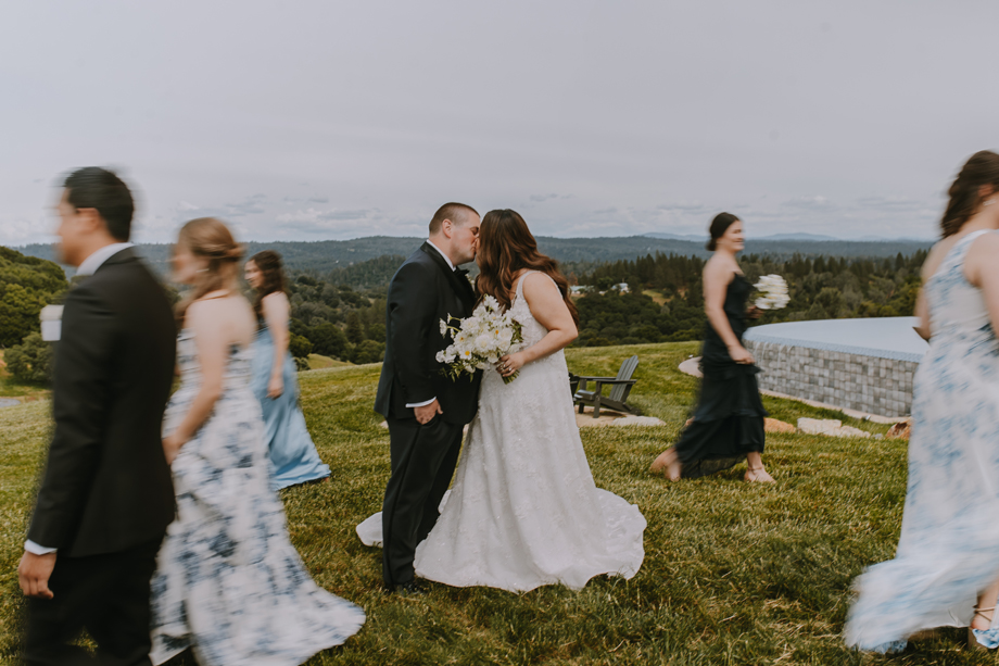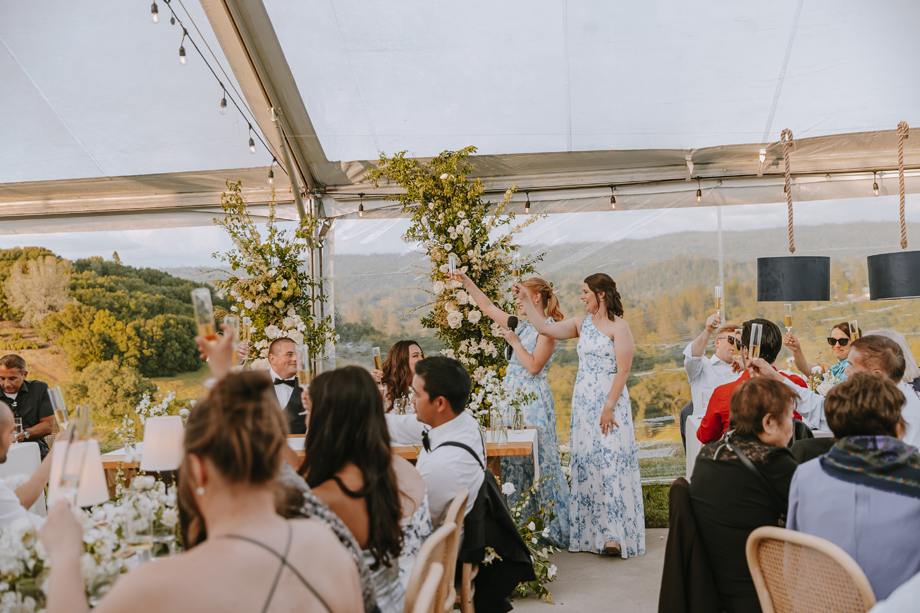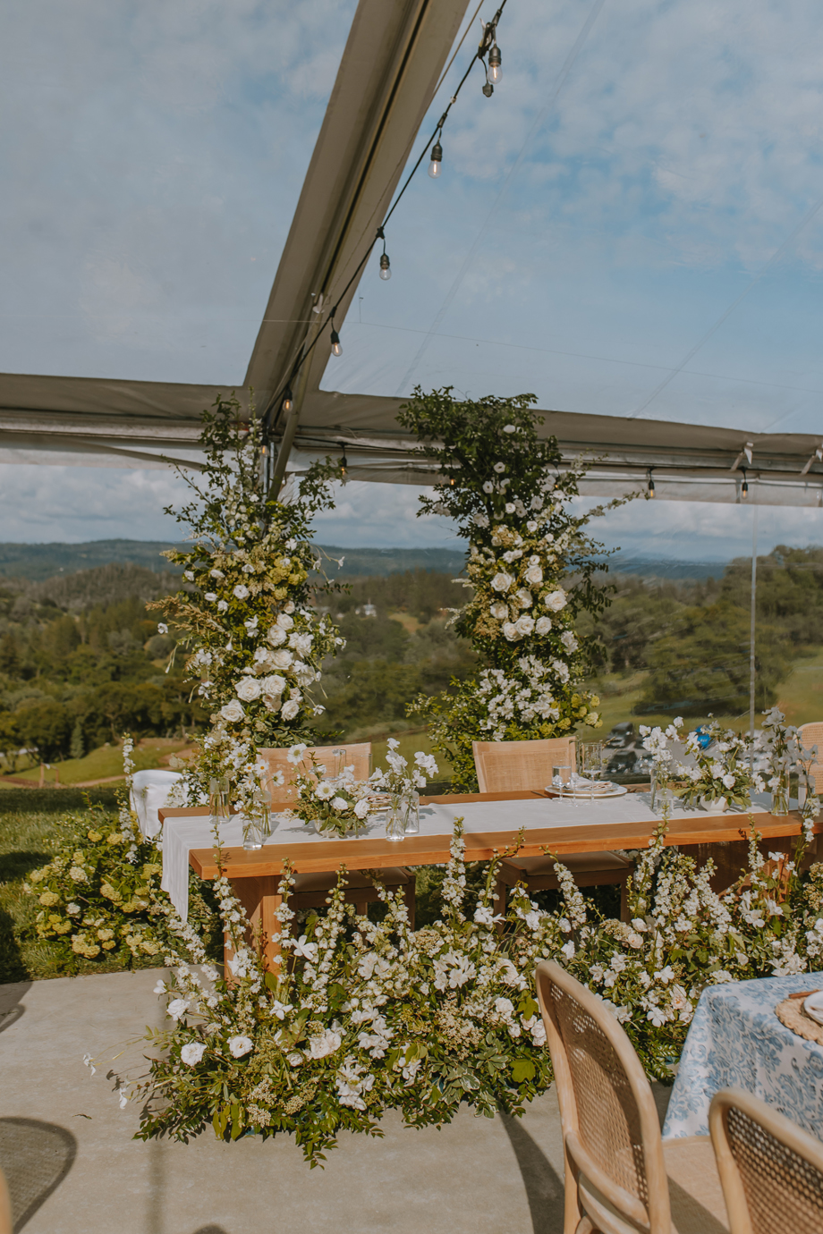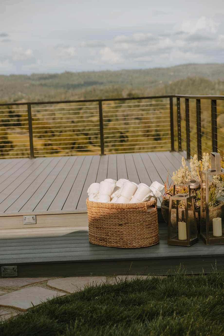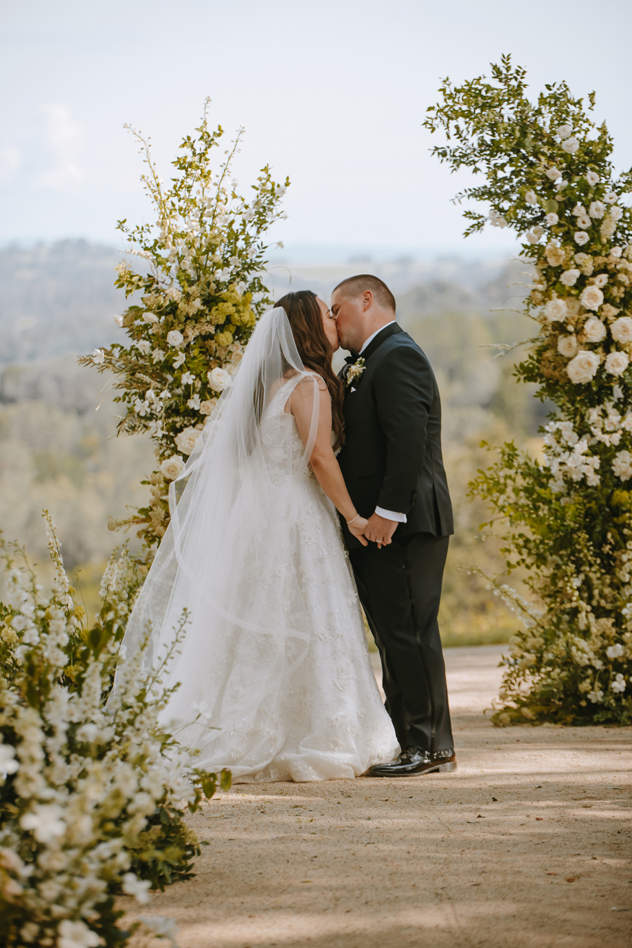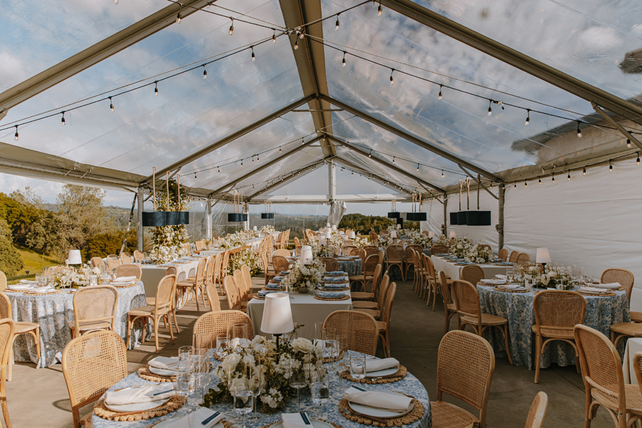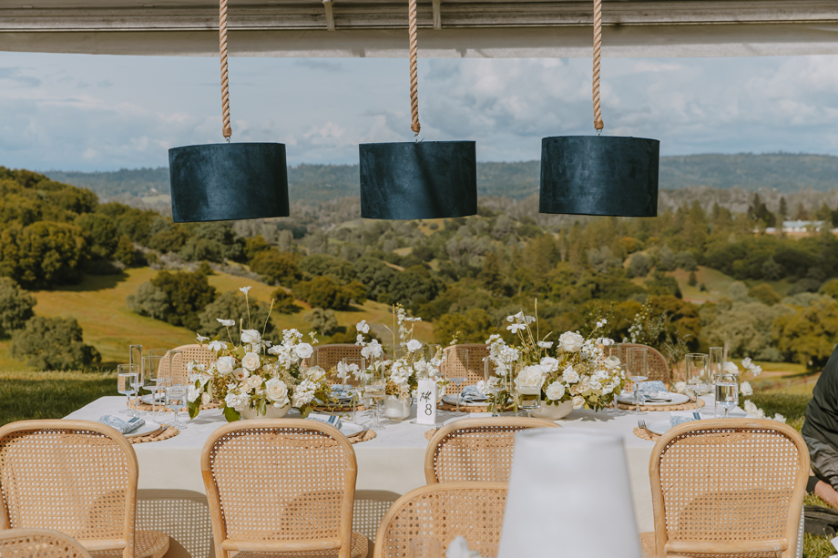 Another unforgettable moment was the reception reveal. It was just us and our vendors—the incredible team we had been working with for over a year—in the quiet stillness of the space, with no one else around. Taking in the stunning tablescapes, the breathtaking hilltop view, and the overall atmosphere was so moving that tears started to fall—not only from us but from some of our vendors as well. It was a deeply emotional moment of gratitude and awe, right before the celebration truly began.