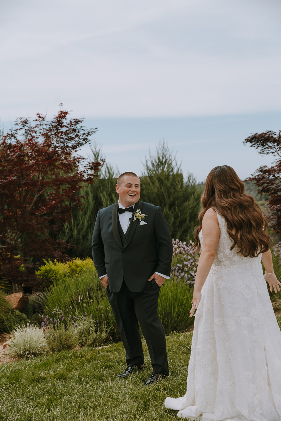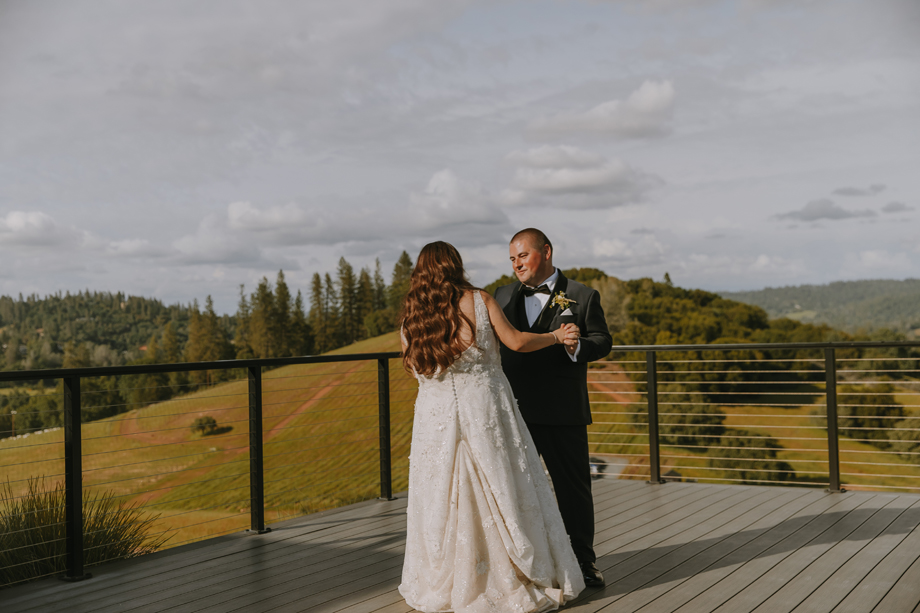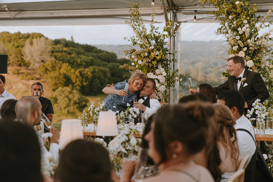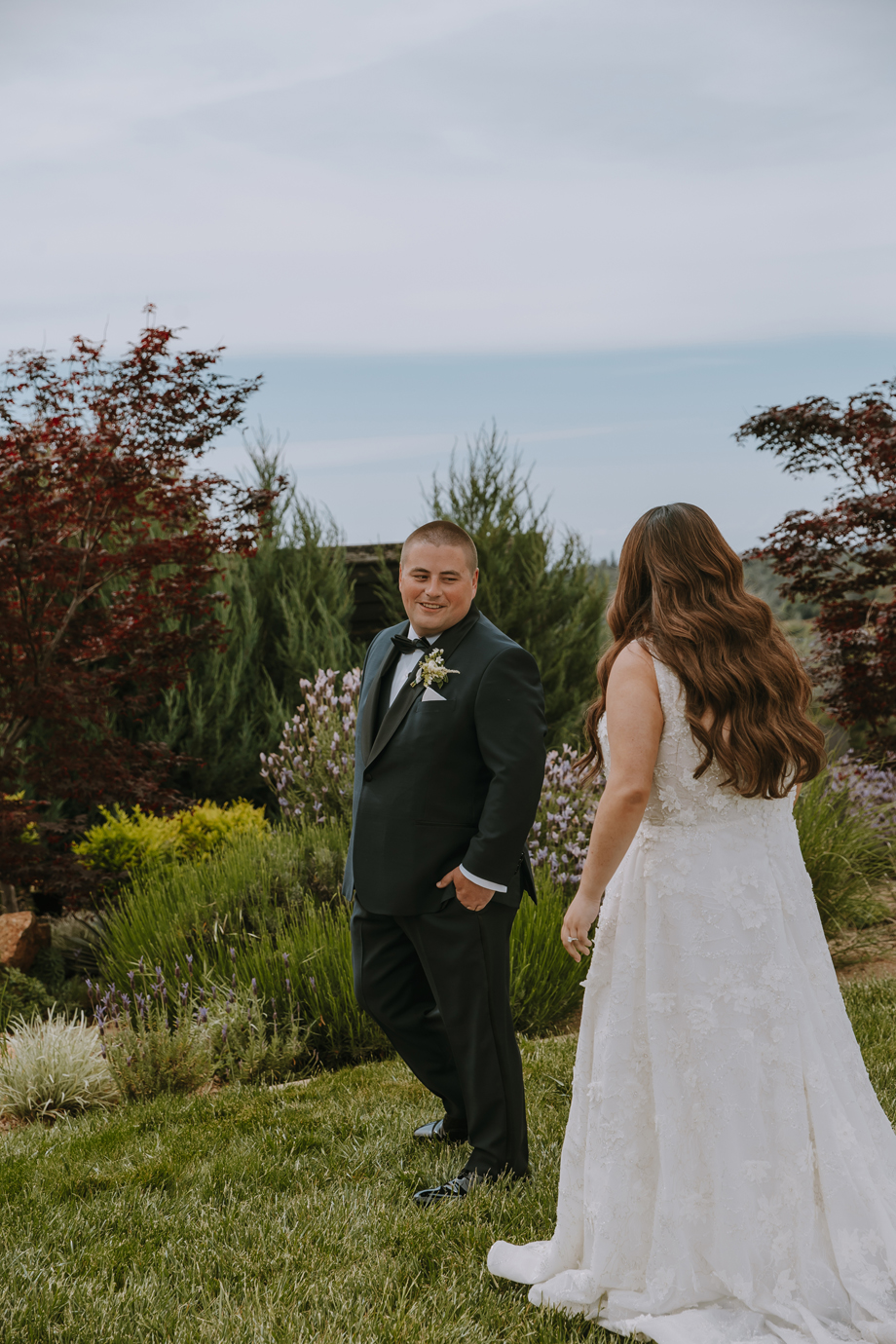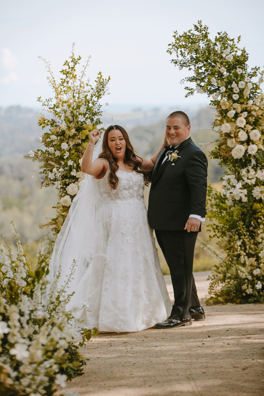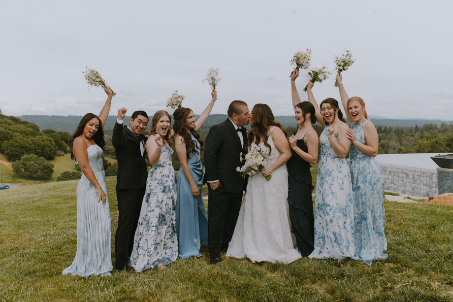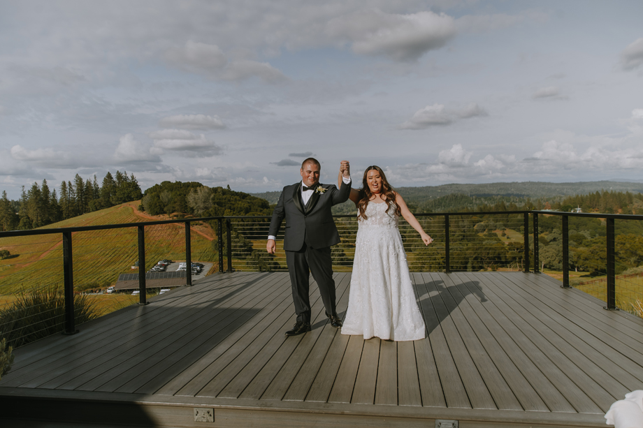 Another unforgettable moment was the reception reveal. It was just us and our vendors—the incredible team we had been working with for over a year—in the quiet stillness of the space, with no one else around. Taking in the stunning tablescapes, the breathtaking hilltop view, and the overall atmosphere was so moving that tears started to fall—not only from us but from some of our vendors as well. It was a deeply emotional moment of gratitude and awe, right before the celebration truly began.