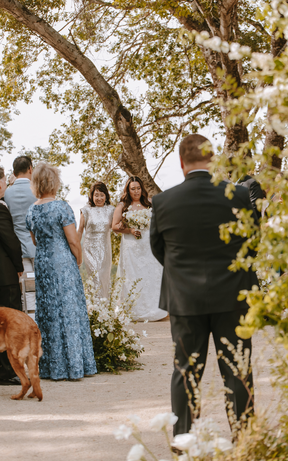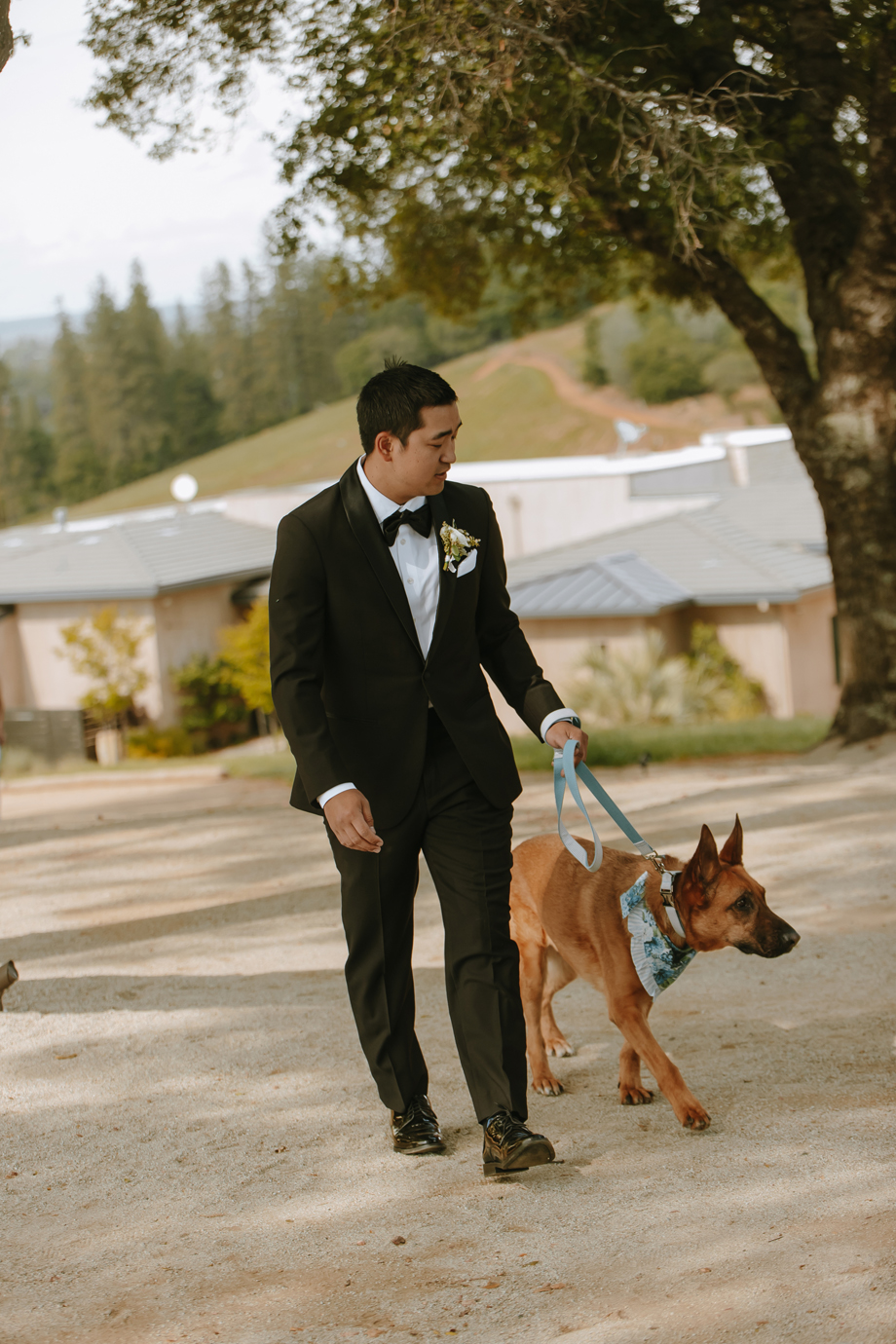 One of the best parts was getting ready and spending time with our pup, Maggi on our big day. We had the help of Dog of Honor Weddings & Events, an amazing dog concierge service, who took incredible care of her throughout the day. They made sure Maggi’s floral bandana stayed picture-perfect all day long. In the morning, Maggi got to hang out with the bride’s crew while getting ready, and later she was with Ryan and his best man as they prepared for the ceremony. Having Maggi so seamlessly included in these special moments made the day feel even more personal and unforgettable.