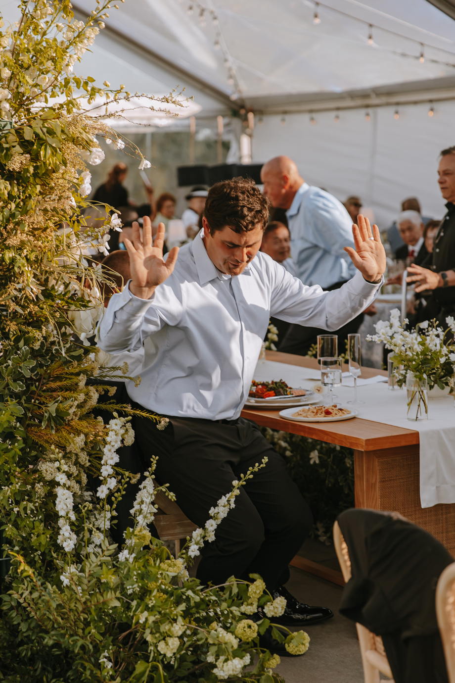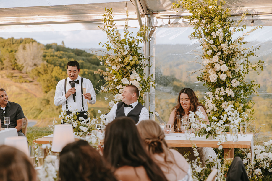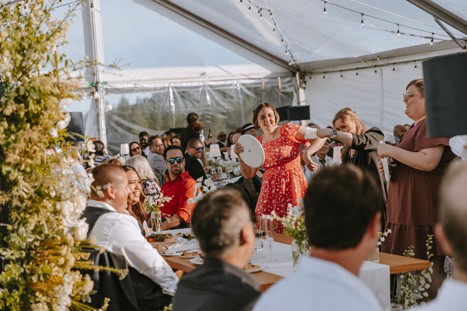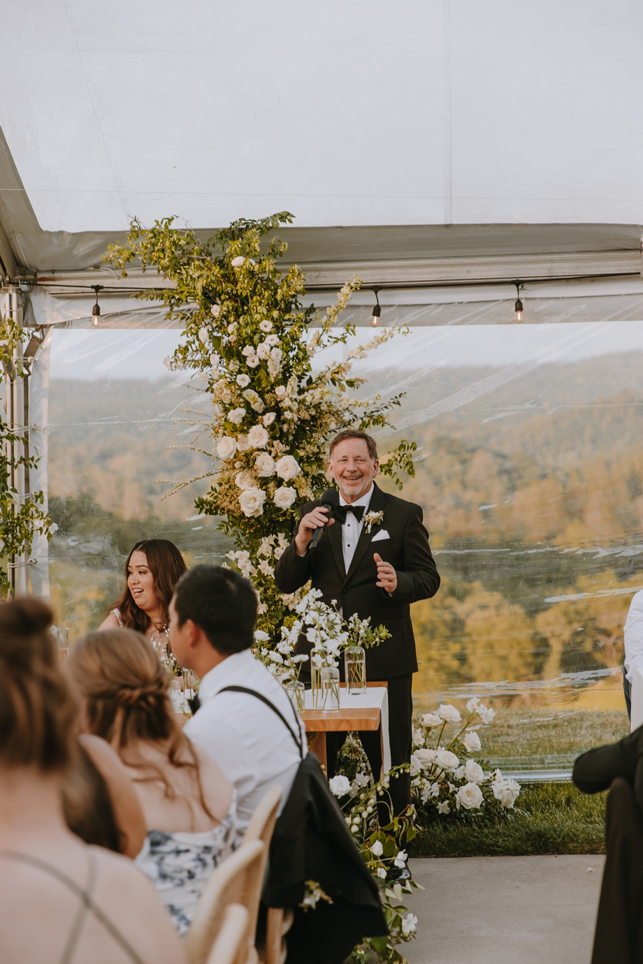 The most stressful part came the week before the wedding. We had to make the difficult (and expensive) decision to add a clear-top tent due to the weather forecast. It wasn’t something we had originally planned for, but in the end, it was absolutely the right call—it gave us peace of mind and ensured our guests stayed dry. The hardest part was simply the anxiety of watching the rain forecast roll in, but everything came together perfectly in the end.