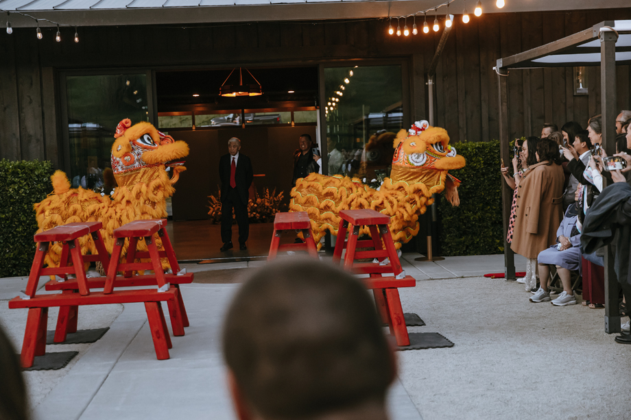 The traditional Chinese lion dance is believed to chase away evil spirits and bring blessings, happiness, and luck to the couple as they begin their life together. Including it in our wedding was a meaningful way to honor cultural heritage while bringing vibrant energy and depth to the celebration.