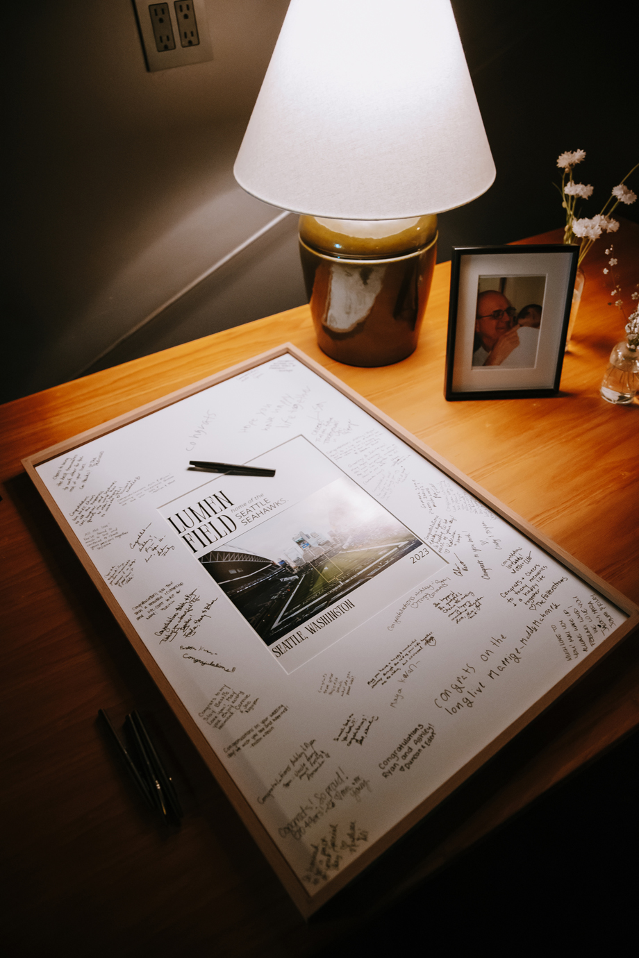 We got engaged on Thanksgiving Day in 2023, in Seattle, WA, right on the Seattle Seahawks football field. We had field passes before the game, and while we were taking it all in, he surprised me with the most unforgettable proposal. With the energy of the stadium around us and with holiday season, everything just paused for a second — and our next chapter began right there. What made the moment even more special was that the game was Seahawks versus Niners. My dad, who has passed back in 2018, was a lifelong 49ers fan, and being there felt like he was with us, sharing in the celebration.