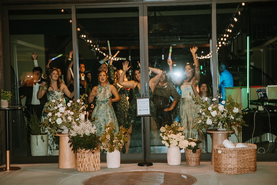 Our reception was not only visually stunning—it truly brought our vision to life—but it was also packed with unforgettable moments. One of the most fun and unique parts was something our DJ and our planner encouraged us to include: a tradition called “a dance to dinner.” Each table was assigned a specific song, and when their song played, the entire table had to get up and dance their way over to us before heading to the buffet. It was such a fun and interactive way to kick off dinner and brought so much energy into the room. Guests were laughing, dancing, and cheering each other on—it completely broke the ice and turned a routine part of the evening into something memorable. Even better, it gave us a quick, joyful moment with each table. Since the night moves so fast, having those small interactions meant a lot and made our reception feel even more personal and connected.