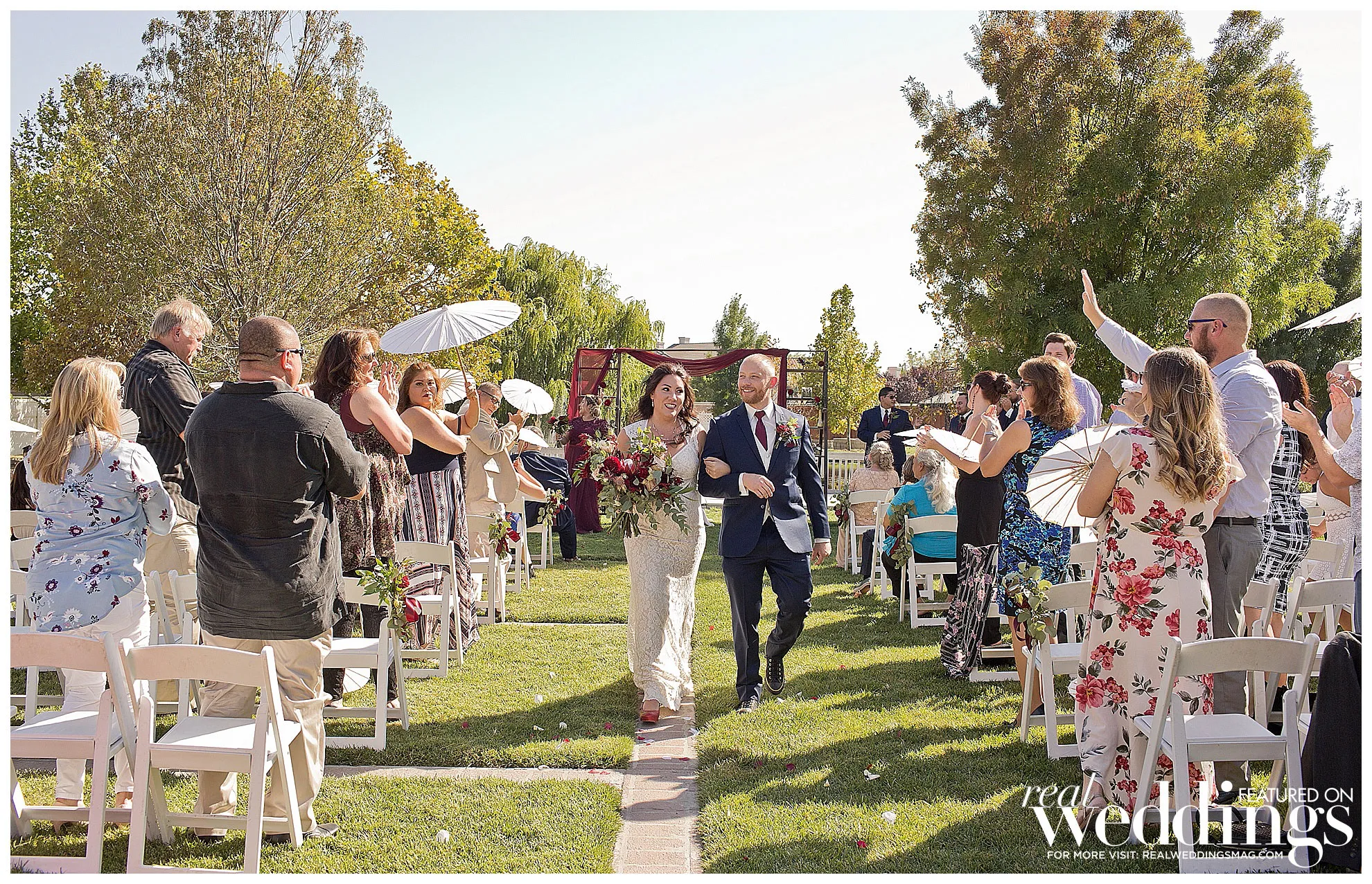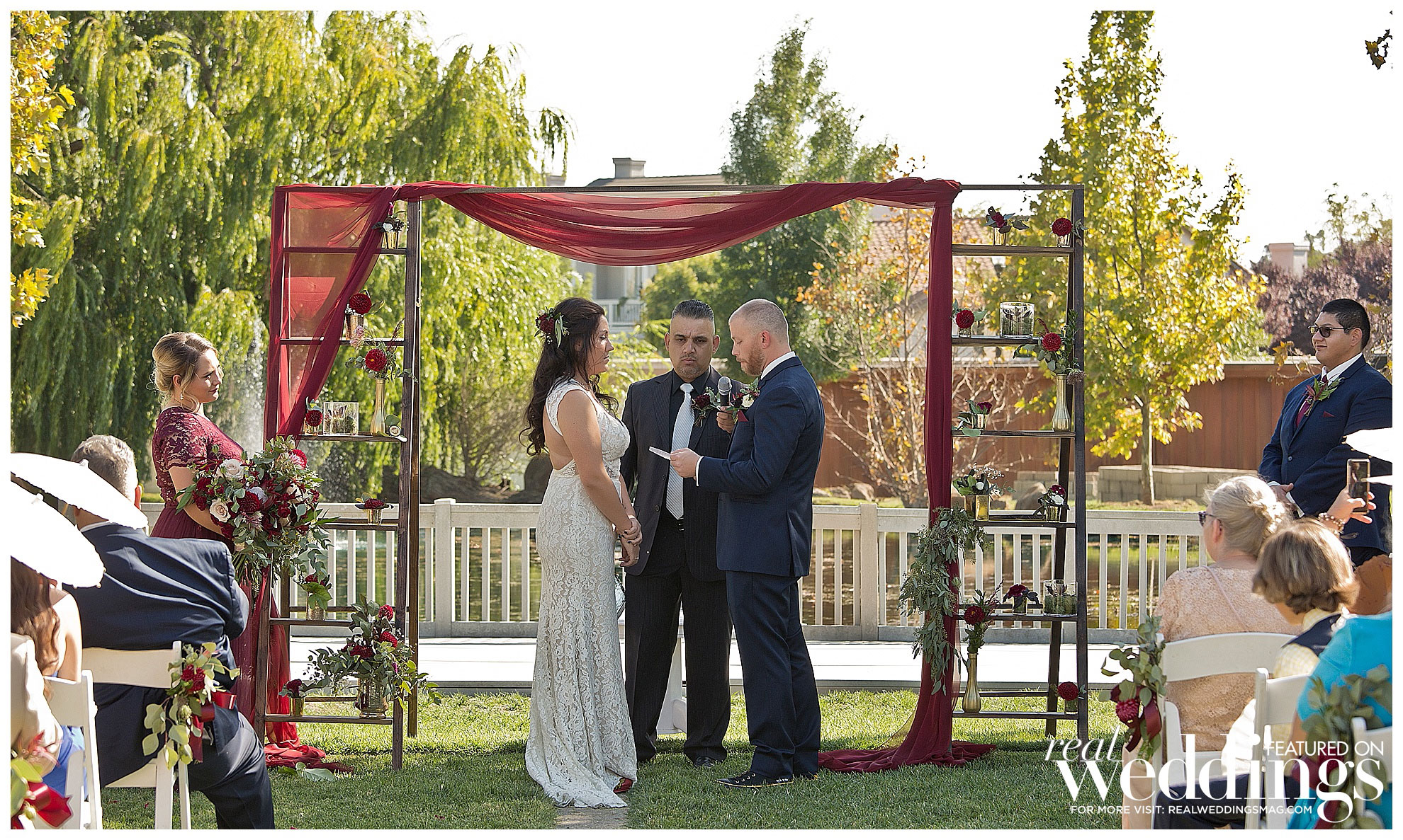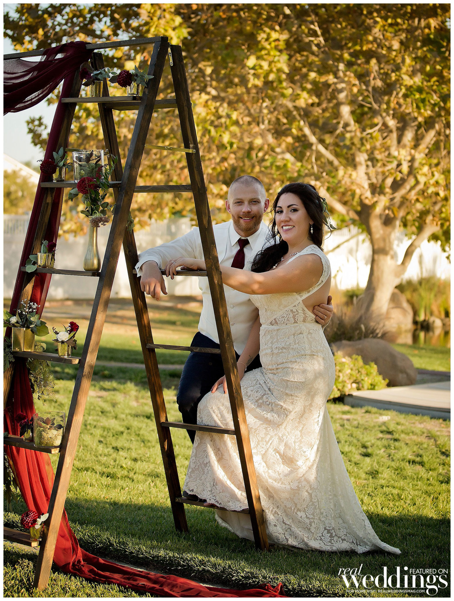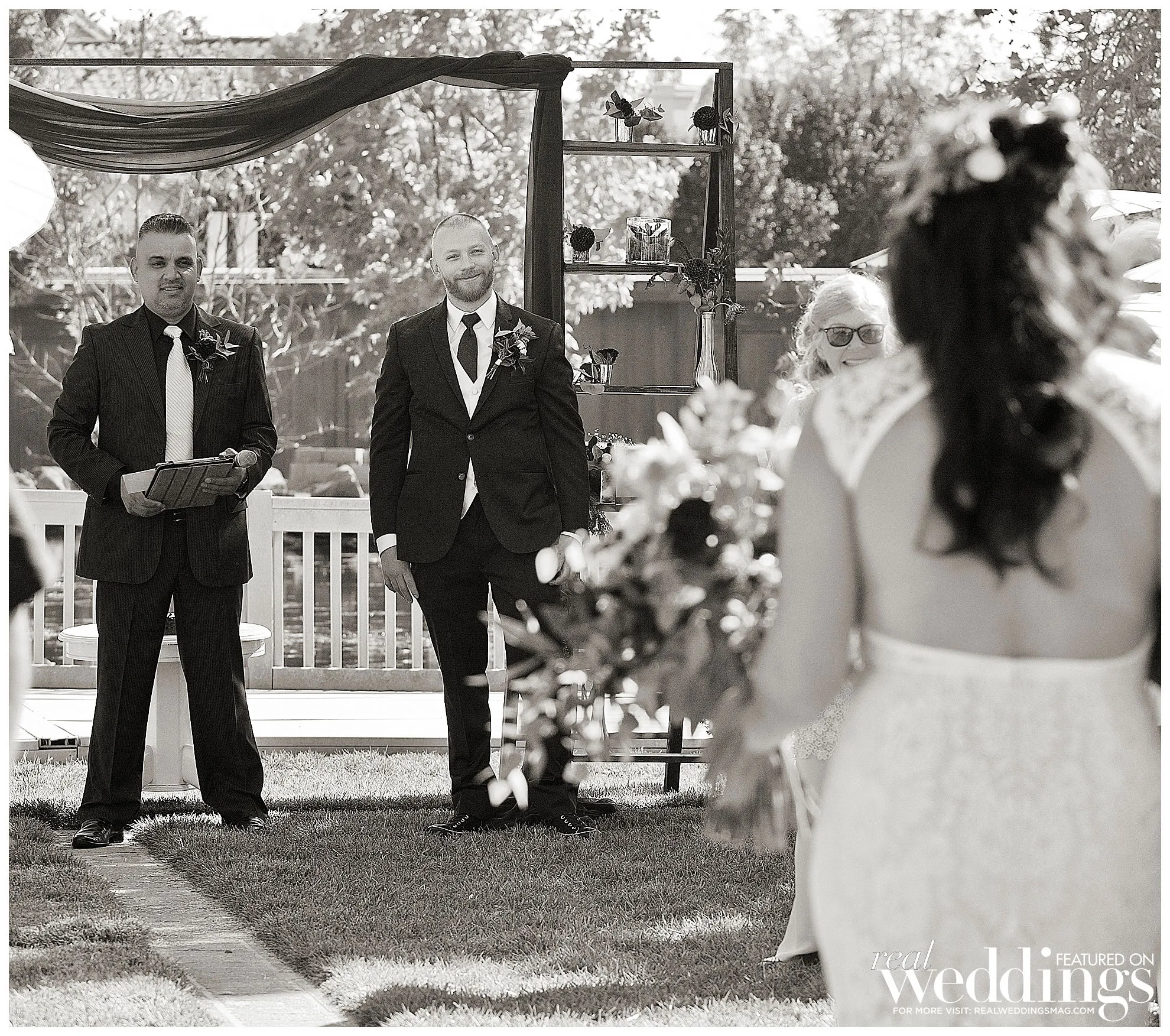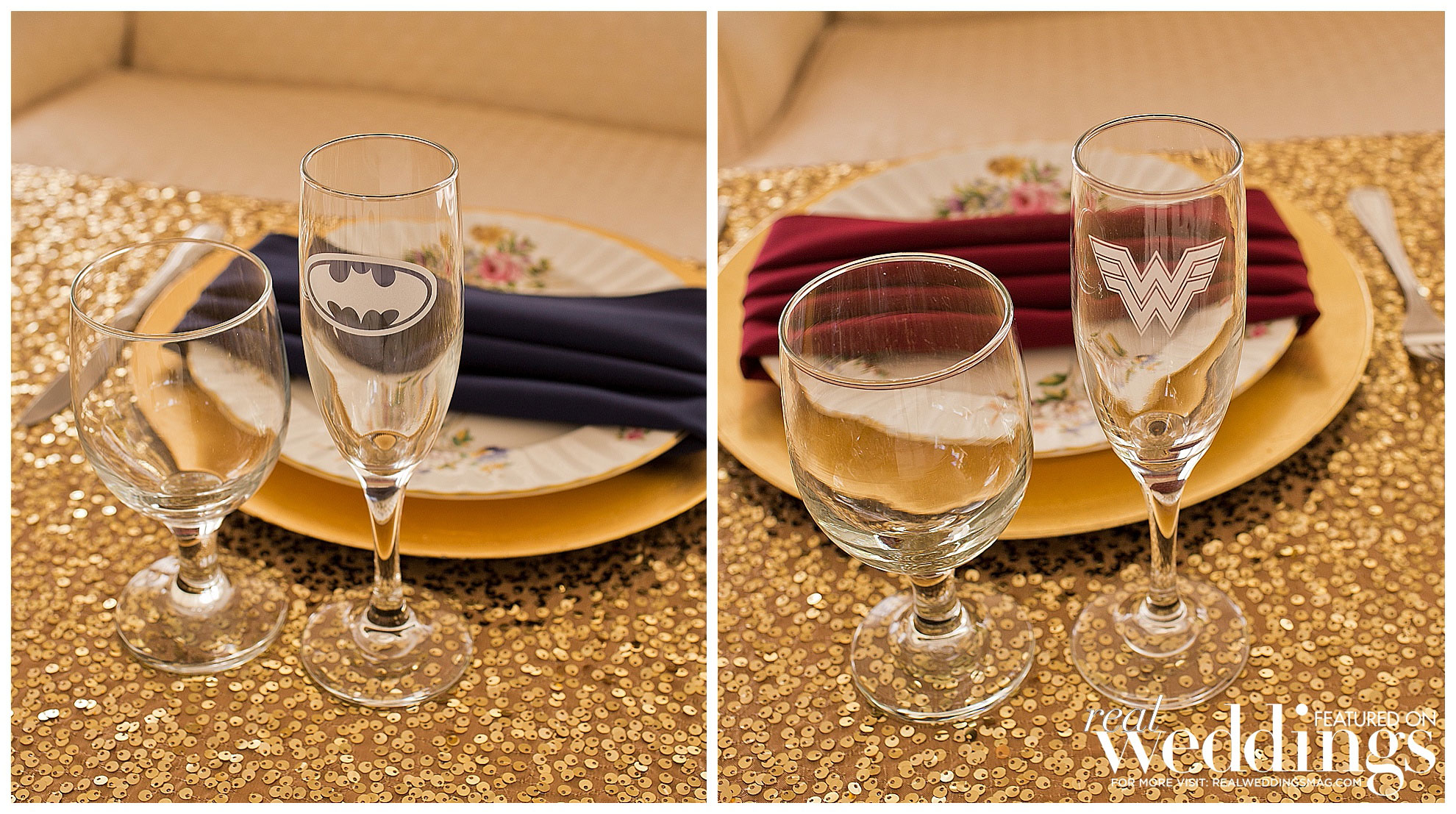The couple exchanged vows during a sunlit afternoon in the company of their closest friends and family. “Our arch was unique,” Ash says. “We stood under two ladders that were decorated with succulents and two special knobs, one of Wonder Woman and one of Batman. They were small and we doubt anyone saw them but we knew they were there.” The bride also wore glittery Wonder Woman wedges and Sam sported customized Converse with Batman symbols and colors.