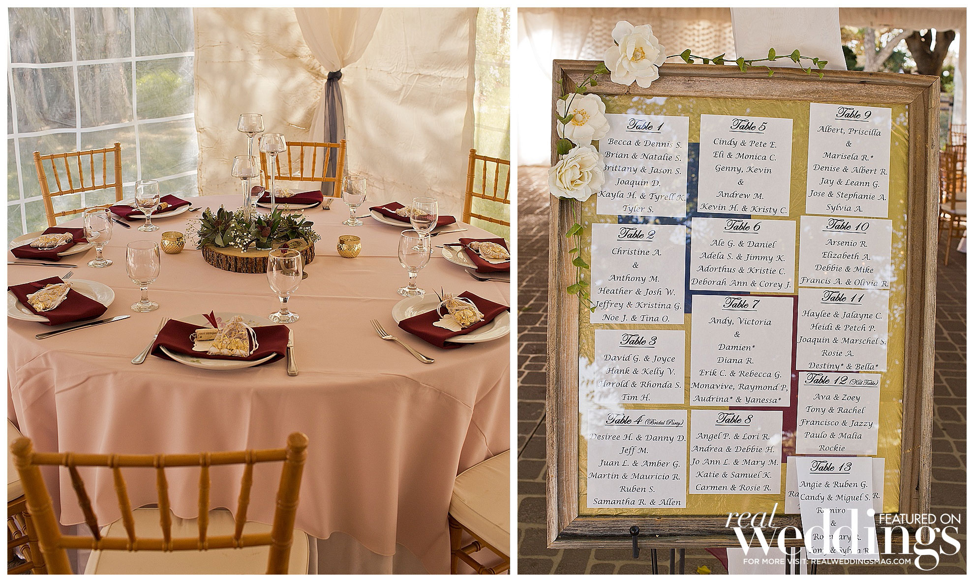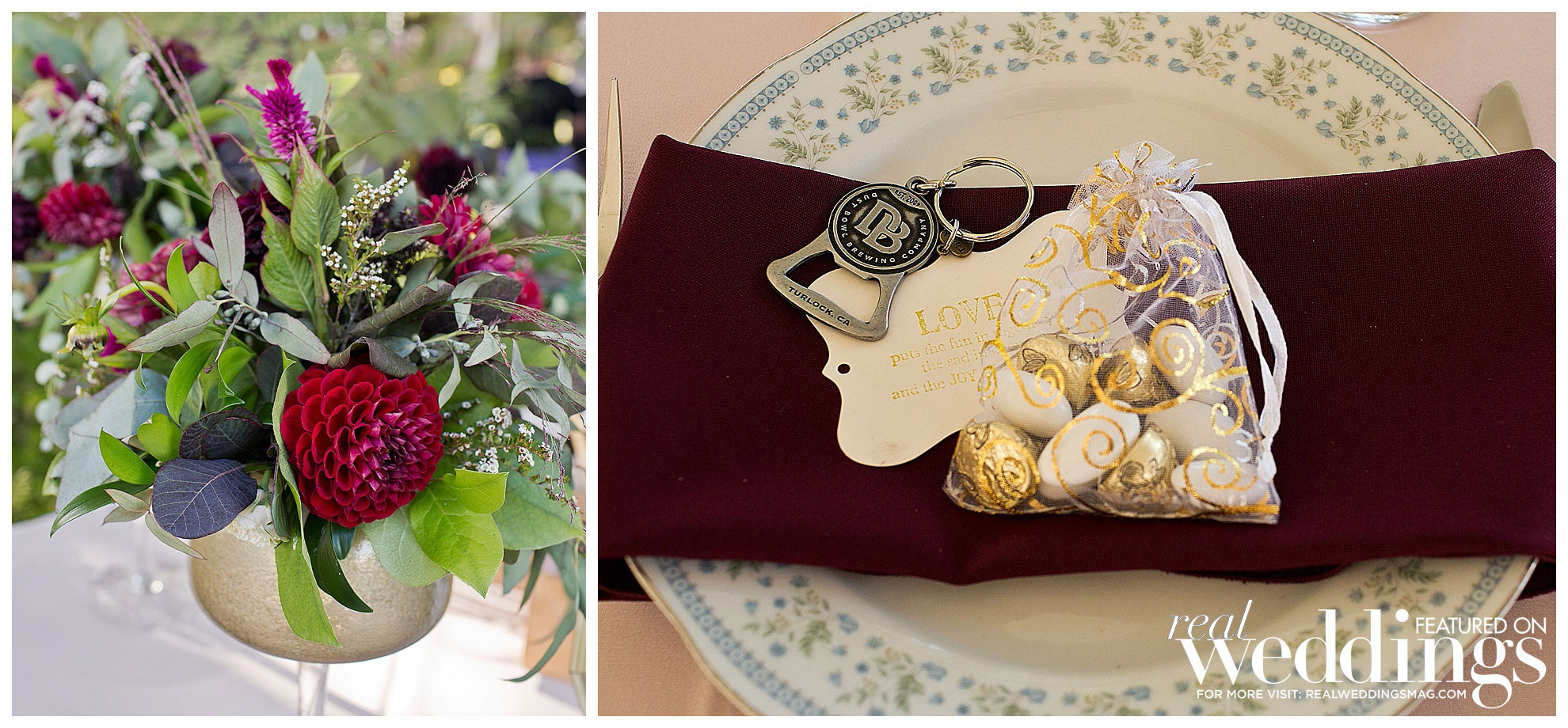 The outdoor ceremony surrounded guests with fountains, sunflower and rose gardens and strings of lights. The reception that followed was held under a draped tent lit by chandeliers. “Needless to say, it was breathtaking,” Ash says. But the most memorable moment for the couple was the cake cutting. “I did a smash and run,” she laughs. “Sam, of course, got me back, but at the end of the night when our friends smashed another piece in his face, it was epic!” The cake also featured their signature superheroes as the toppers.