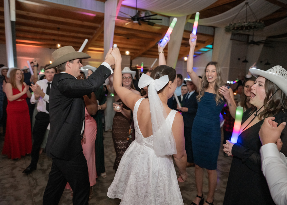 The party (and the light up cowboy hats). The dance floor was full all night long, not only dancing, laughing, talking, smiling. It was the most fun I think most of us have had in a long time–family and friends coming together from out of state, out of country to celebrate us.