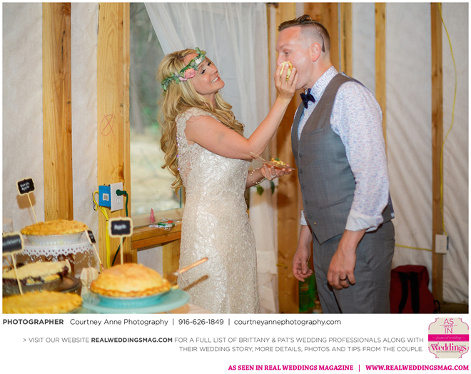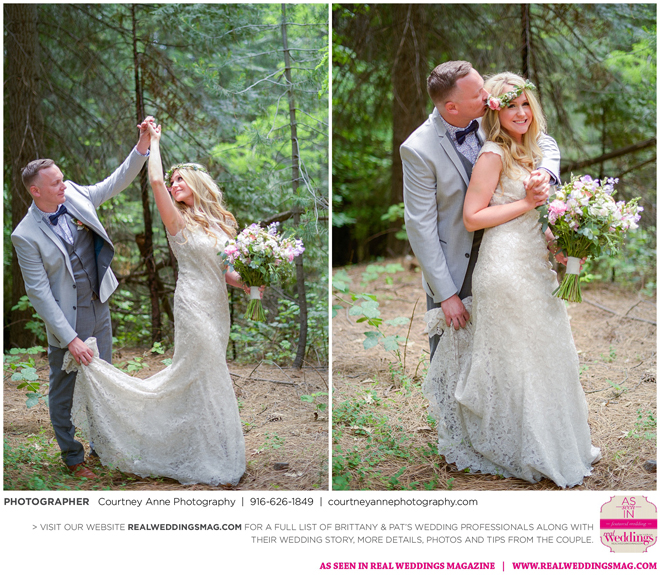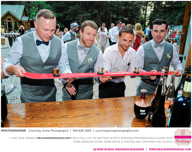 Of course, after some time of Brittany calling the shots, it was Pat’s turn to take charge during a trip to Lake Tahoe. “I had the ring and had plans to propose, but things kept falling through with those plans,” he says. “We both work jobs with odd hours, so it was difficult to find a day together. I seized the moment out on the dock at Gar Woods, and she said, ‘Yes.’”