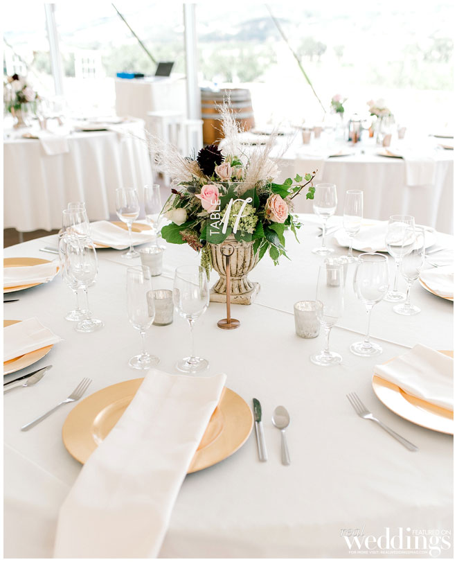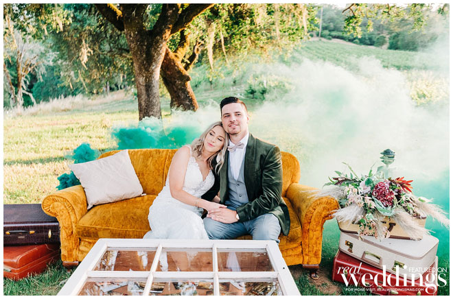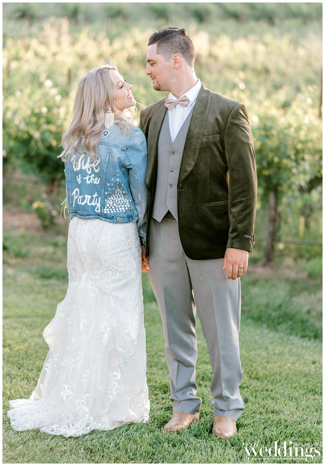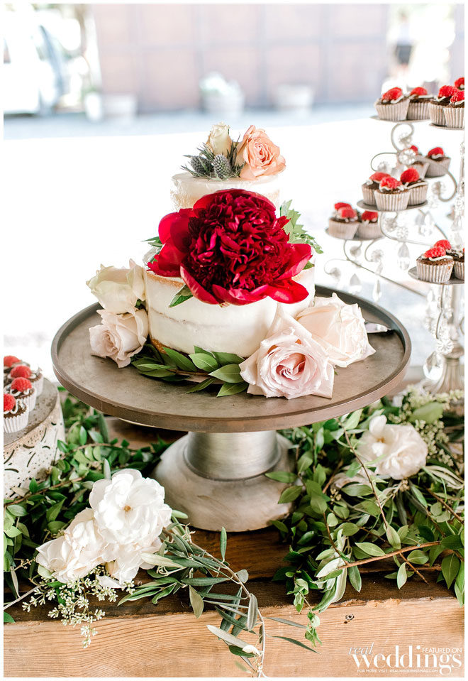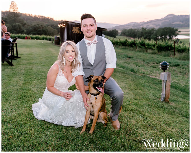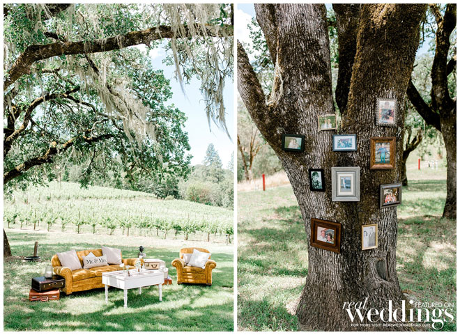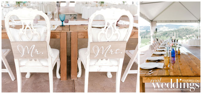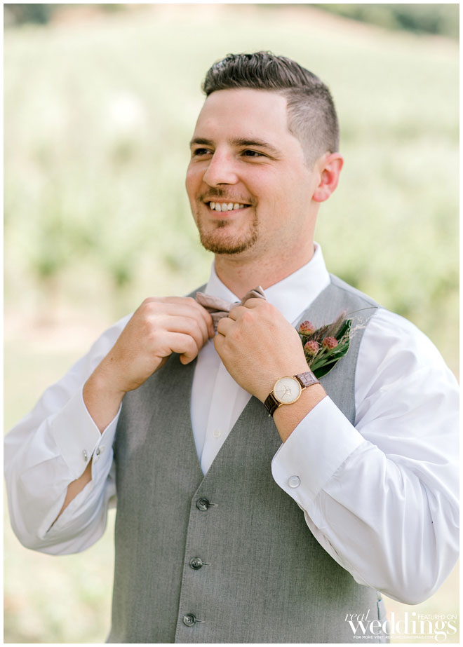 The venue holds many memories for Casey, as he grew up on the property and watched the land evolve into a beautiful setting. The couple chose an Italian rustic theme and loved everything about the day. Their special guest, a burro appropriately named Burrito, made an appearance immediately following the ceremony with sparkling wine for the newlyweds. Brooke and Casey had a moment to sip the bubbly, sit on a vintage couch and watch their guests mingle during the cocktail hour.