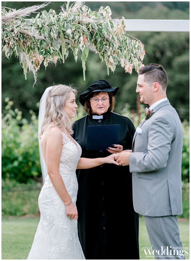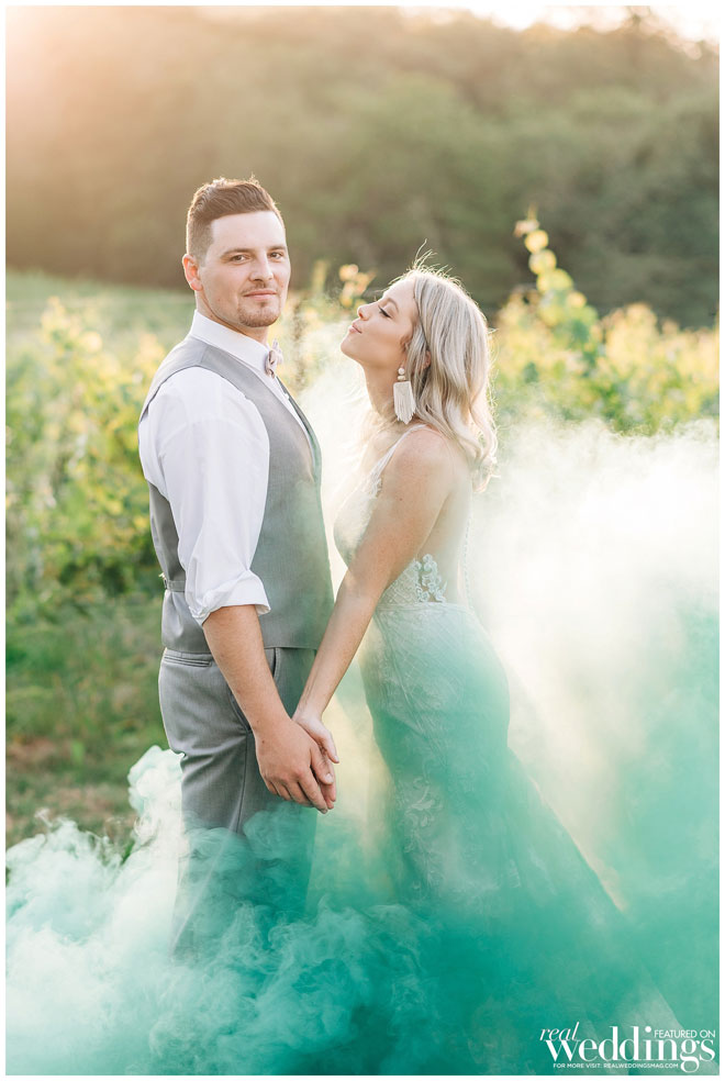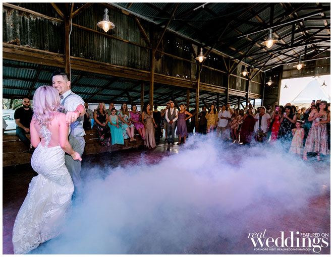 One of Brooke’s favorite memories during the ceremony is captured in a photo: she saw the weather about a mile away and the rain was pouring, the sky was dark, yet their ceremony was spared and drenched in sunshine. “Seeing the storm in the middle of summer was surreal.”