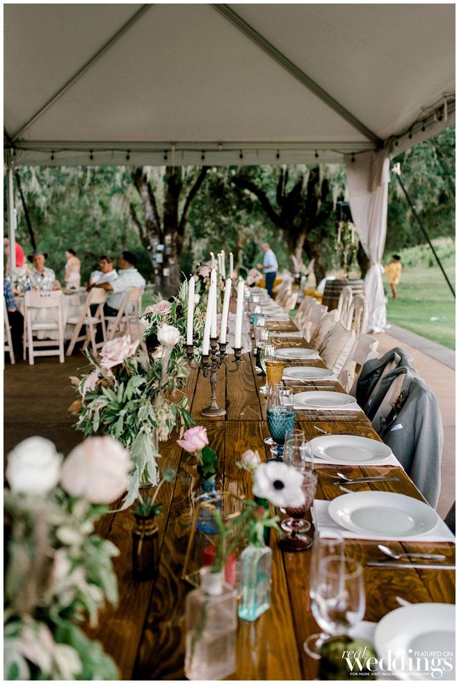 Fast forward about eight years and they found themselves in Costa Rica on vacation with the bride’s family. Casey had a prop ring in his pocket as he waited for Brooke to slide down a waterfall. When he began to propose the family was watching and even recording the moment. Of course, Brooke, said yes and the planning began. Later, when they watched the video, the noise of the waterfall behind them drowned out the conversation—only the couple will know what was said.