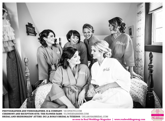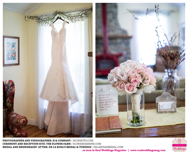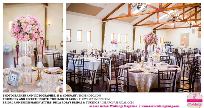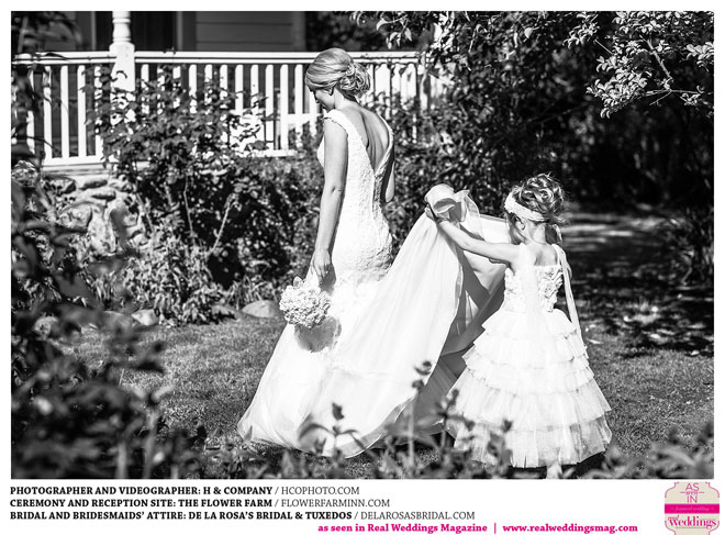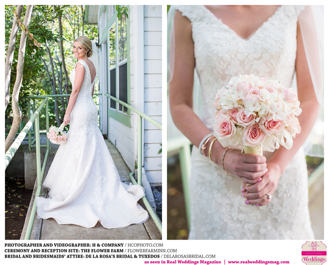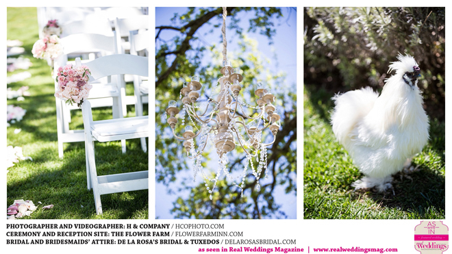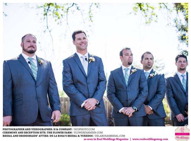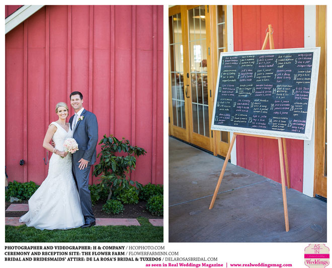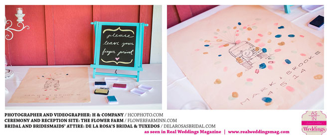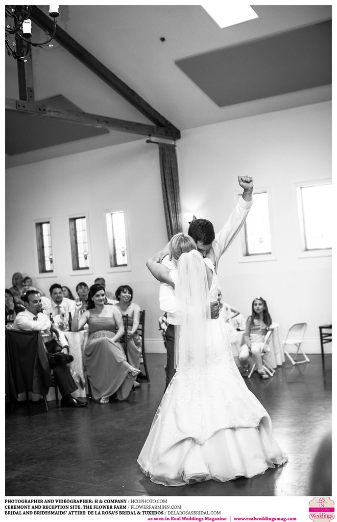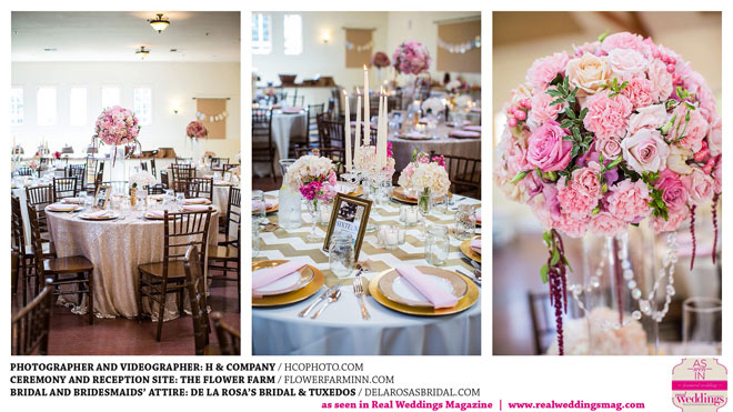 The duo opted for a spring wedding at The Flower Farm with a romantic, shabby chic feel. Brooke chose soft pinks, golds, silvers and champagne for her décor and flower colors, while her bridesmaids brought a pop of color with their bright blue dresses. Many guests complimented Brooke, telling her that the wedding looked exactly like something she would pick. To include a touch of Mark, Brooke surprised him with a “groom cake” featuring a Jeep driving up the side (the car he’s had since age 15).