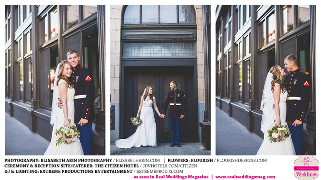 Cait and Josh were deep in the midst of picking floral arrangements and a color scheme when their plans were turned upside down. In a whirlwind afternoon, they learned Josh was to be deployed, leaving them just eight weeks to tie the knot. Lucky for them, The Citizen Hotel was able to accommodate their new wedding date and they were able to send Josh off having celebrated the couple’s love and commitment to each other.