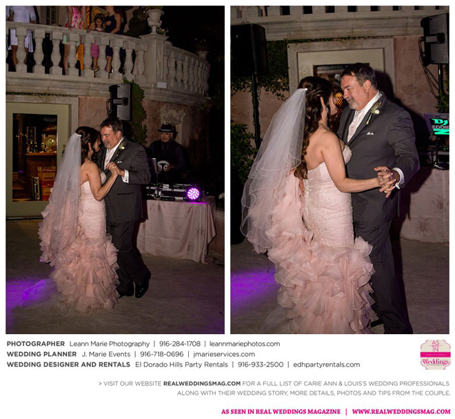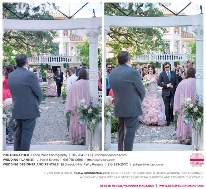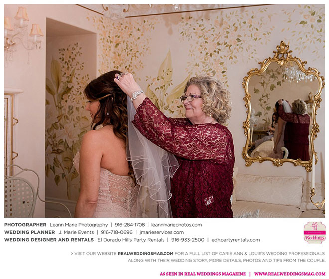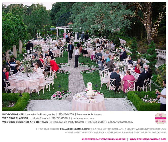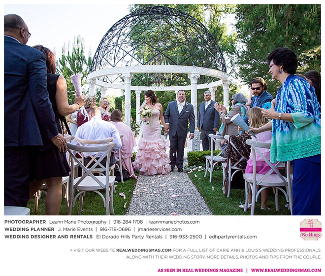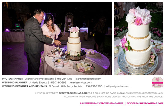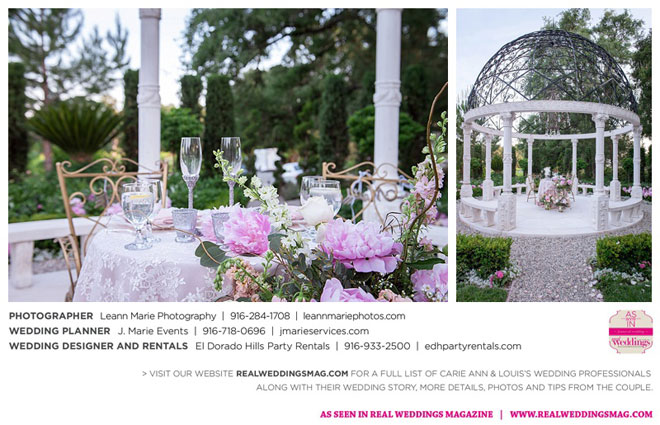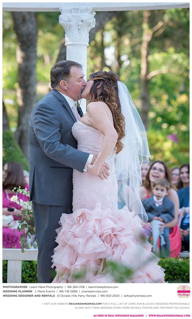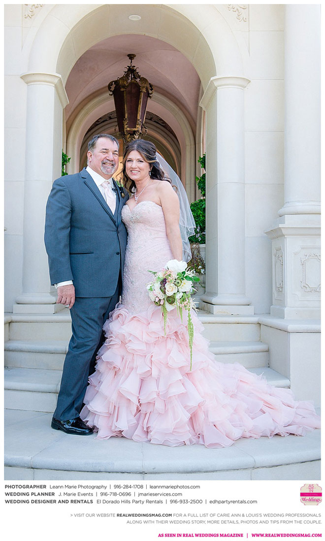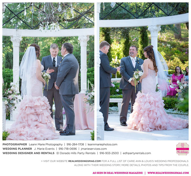As owner and event design specialist at El Dorado Hills Party Rentals, Carie Ann has an eye for details. For the color palette, she chose blush, ivory, silver and grey. The flowers were her favorite bloom: peonies. Still, being in the wedding industry was a challenge for Carie Ann. Two months before the big day, she realized she needed to make her own event a bigger priority. “I had set my own wedding plans on the shelf,” Carie Ann says, noting she woke up panicked at 3 a.m. Later that day, she called event planner Jordan Brushia, from J. Marie Events, a resource she calls “a lifesaver!”
