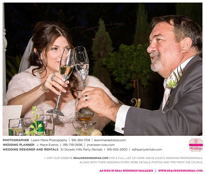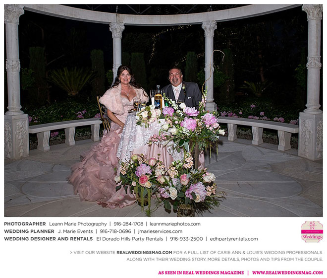 The couple—who met 12 years ago at a dinner party—married in a spring wedding in the gazebo and garden at Pallazzo di Mangianella, a private estate in El Dorado Hills. Carie Ann says the wedding vows were a “beautiful mix of love, spirituality and prayer—blessed and delightful.” The groom—who’s the owner of The Mansour Company—was amazed by his bride. “The feeling I had was the same I felt 12 years ago when we first met,” he says. “I saw the most beautiful woman in the world walking toward me, staring into my eyes.”