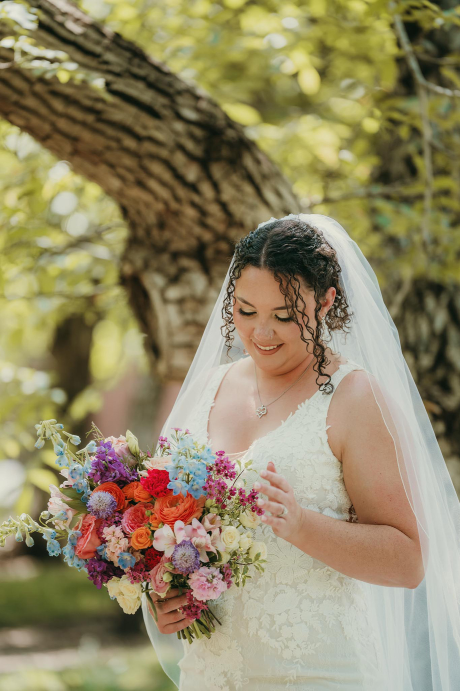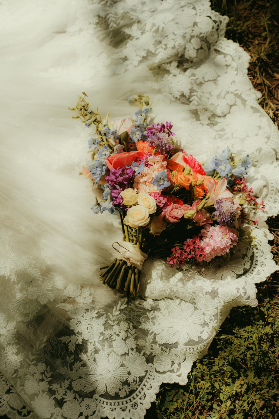 Our favorite detail from our day were our flowers. We had gone back and forth a lot on our wedding and floral colors, unsure of what was really “us”. One of the bridesmaids sent Caroline Pinterest inspiration pictures of wildflower weddings, and she instantly knew that was it. The bright colors of varying heights and textures, as well as the symbolism of wildflowers, spoke to how we live our lives and love each other–fun and free.