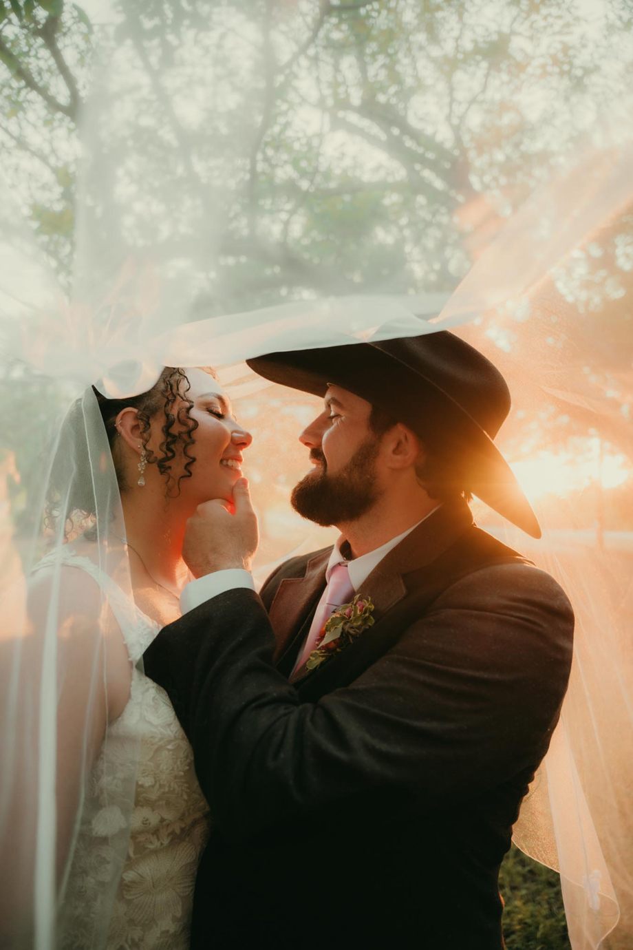 Dustin: Every part of the day came together to make for a wonderful wedding experience. From the ceremony, to visiting with friends and family, and to partying it up on the dance floor. However, I think the best part of the day for me were the small things we got to do together that helped slow down the day and bring calming moments to all the excitement. One of which was when we set off to take sunset photos out in the orchard. We got a fun first-class golf cart ride out away from the reception together, where the two of us had time to take a deep breath and watch the party from afar. During the photos and the ride to and from the orchard, we really got to soak in the moment and catch up with each other on how we were enjoying our day. It was a great way to pause and look around at how our wedding day vision had come to life.