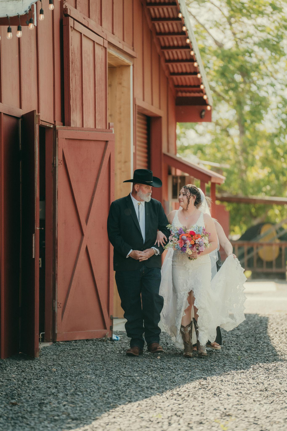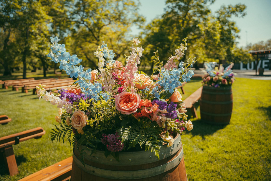 We absolutely loved all of our vendors and would have been so lost without them. Danielle, Ryan, and the whole team at The Red Barn Weddings & Events truly made our day amazing with their attention to detail. Our day was perfect and stress free because of their hard work. Our photographer, Maria at Pixel Perfect Photo + Video, captured our day beautifully—she was amazing to work with and really listened to us about our vision. Odell Craft Barbecue is always a crowd favorite—they were able to cater to some specific food allergies so all our guests could enjoy their delicious food. Our floral designer, Alli at June Bloom, created the most beautiful wildflower-inspired pieces and also took on the task of decorating our four-foot elk shed for the arbor.