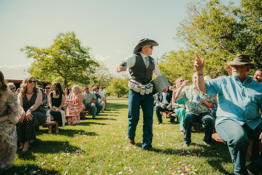 A lot of guests have said that our wedding was a really great time that just felt so easy. We did not over plan and try to do too much with our day. We wanted to just be with our people, have fun, and throw a party. We kept everything pretty low stress, and our guests felt that. Oh, and they will definitely remember the beer boy tossing our beers down the aisle, and the cutest beer burros ready with a beer in exchange for a pet.