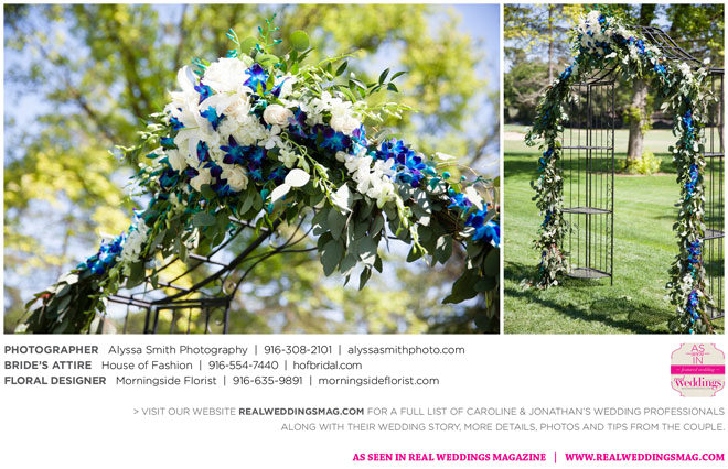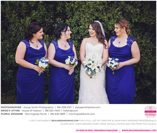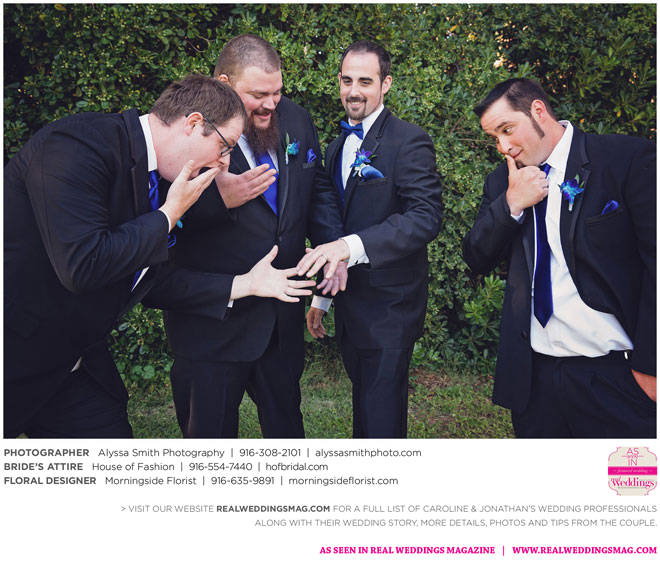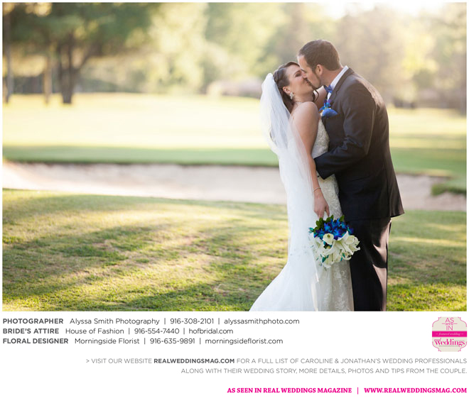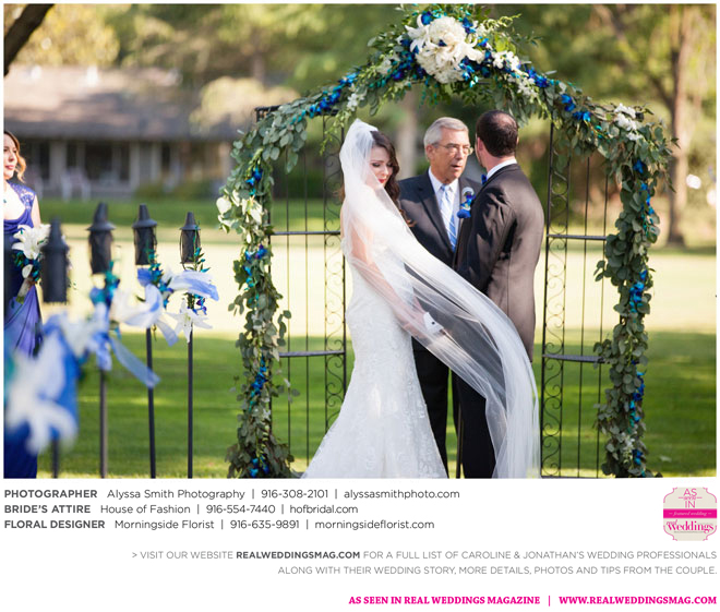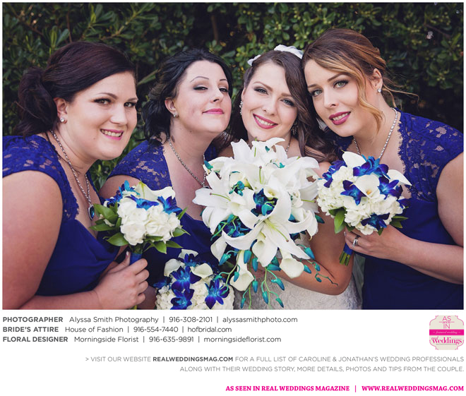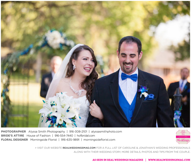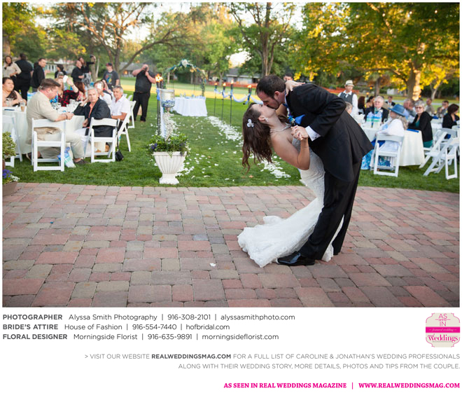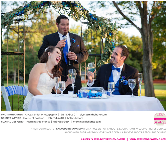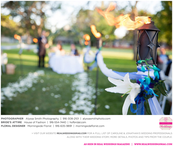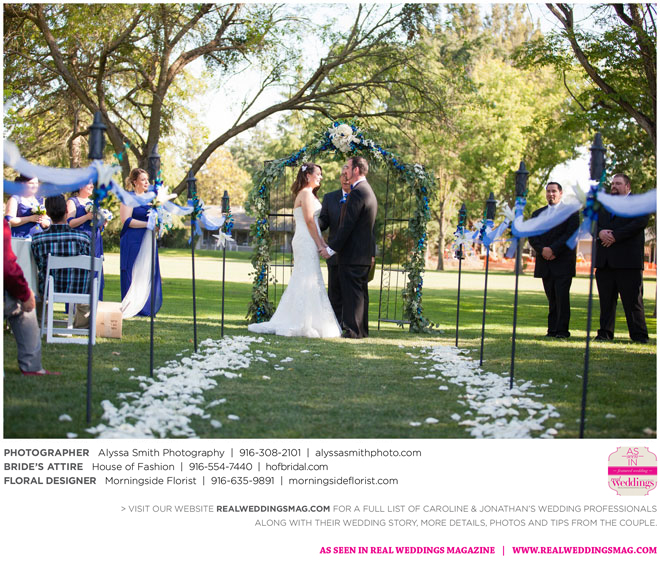 A year and a half later, they married in front of 100 guests at a family friend’s residence on El Macero Golf Course. They loved the private venue for its large trees and shade, as well as sentimental reasons. “We’ve had many special memories there and figured [we could] have our wedding there and make a very memorable memory that we can look back on every time we go there,” says Caroline, an office manager at a landscaping company.