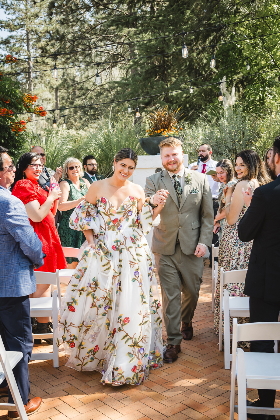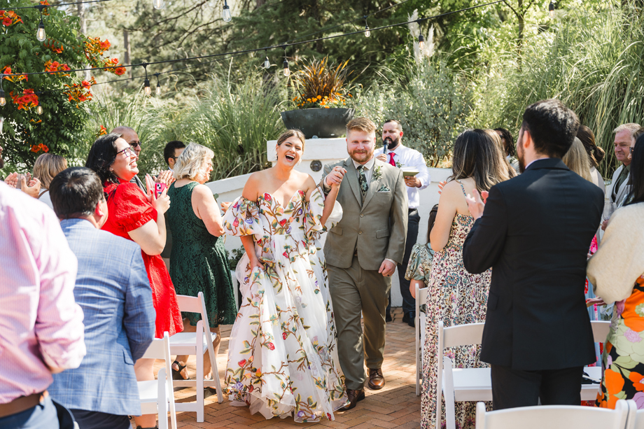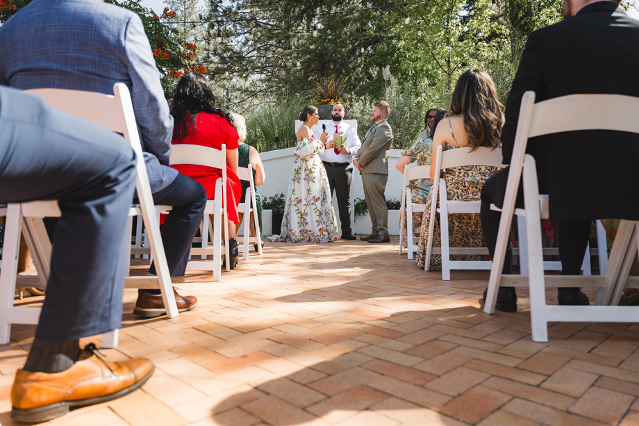 We like to think that it felt intimate. It was a beautiful summer day in the gardens, and the bride walked down to “Concerning Hobbits” from Lord of the Rings, which caused some people to laugh. This was perfect because Dylon surprised the bride by speaking Elvish in his vows.