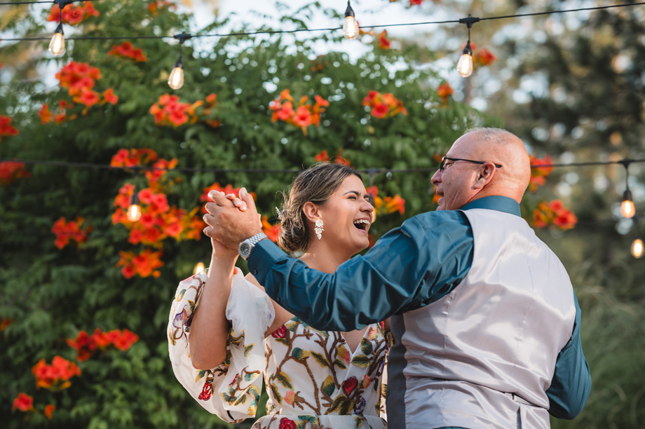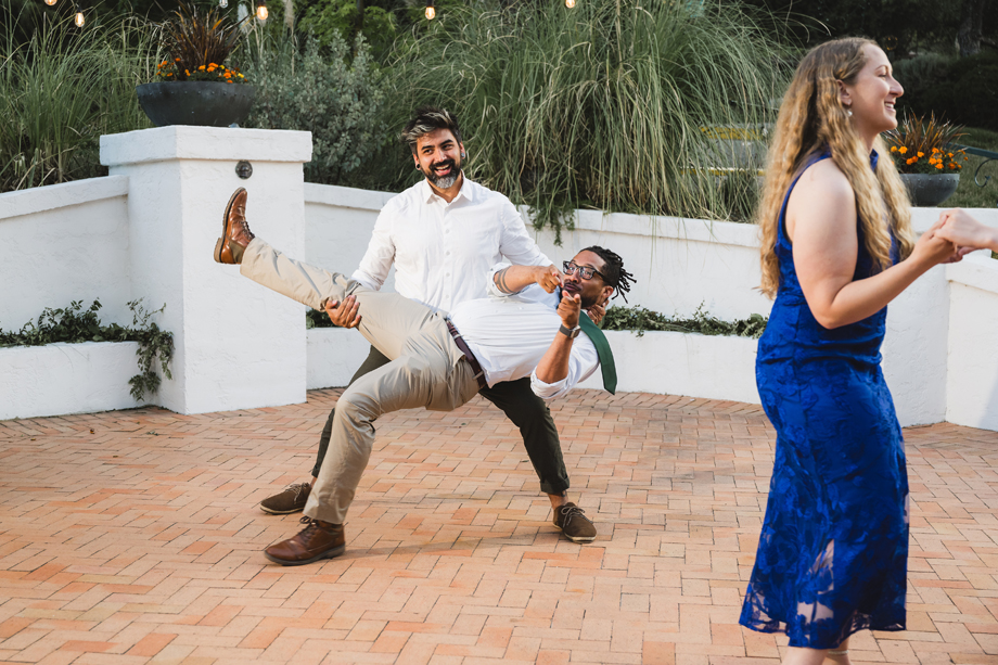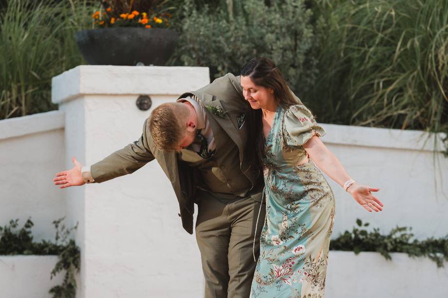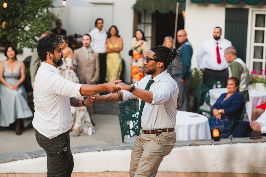 For Dylon, it was seeing his father dance for the first time in his life, as well as seeing his younger brother doing swing dancing. His friends took turns dipping the other men, and it was really funny. Also, when Dylon tried to grab me for a fast dance, he leaped over a small ledge and ripped the inner seam of his pants. Luckily, no one else knew and it didn’t stop the party. We also learned how much the day meant to our parents. There were more tears than expected from both sides of the family, and it meant the world to us.