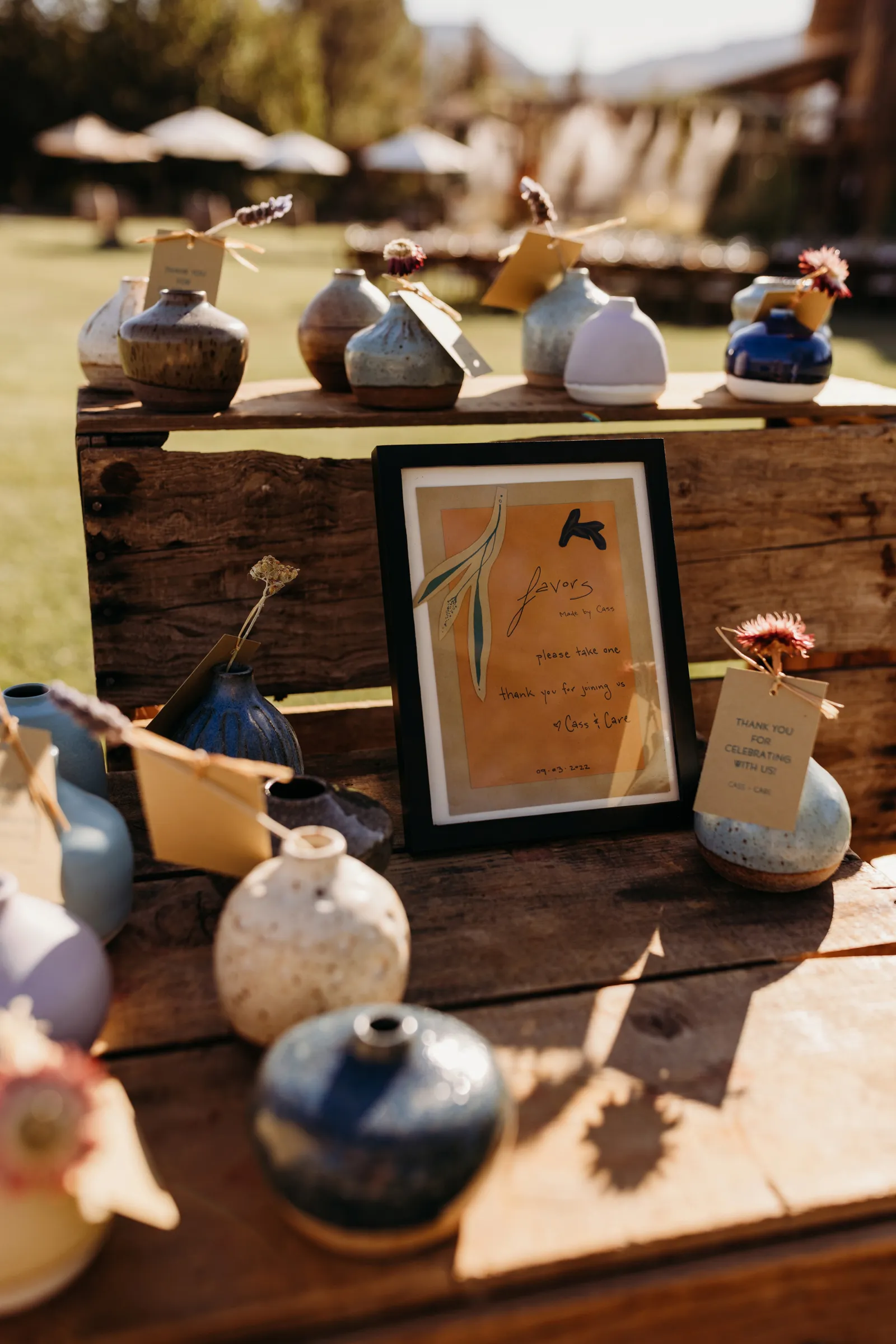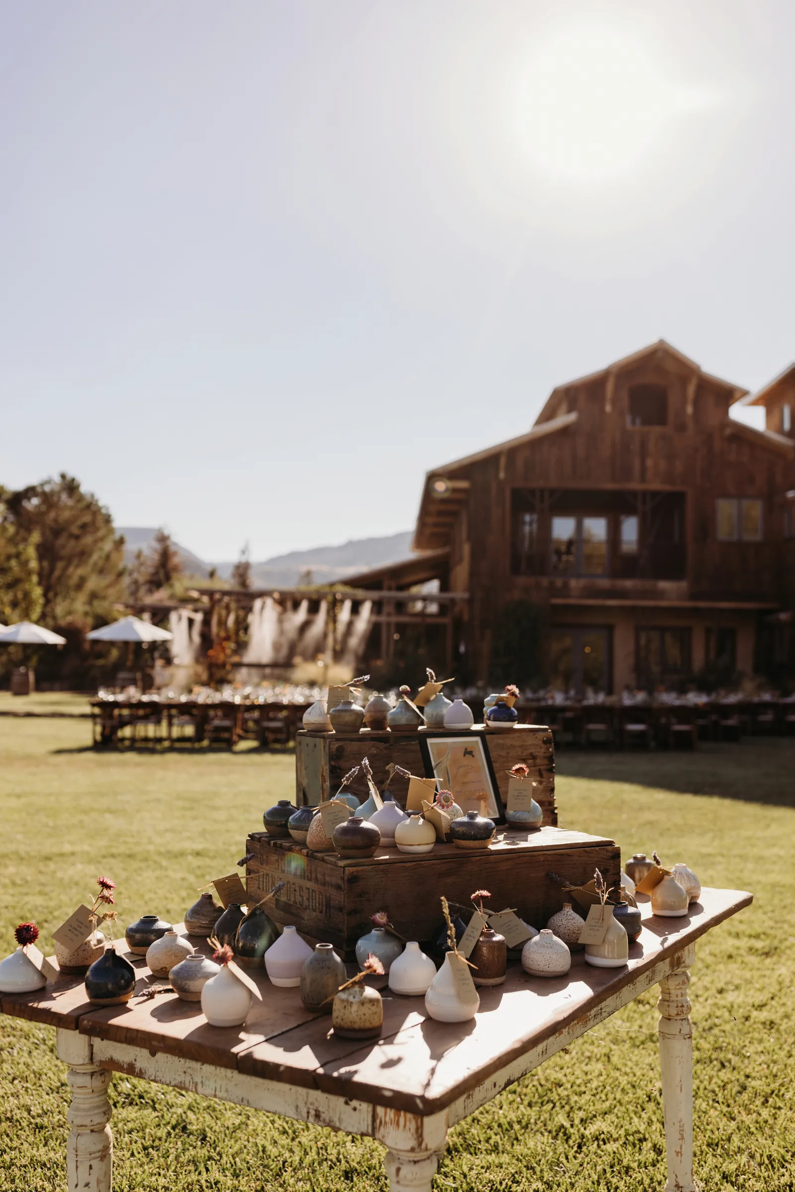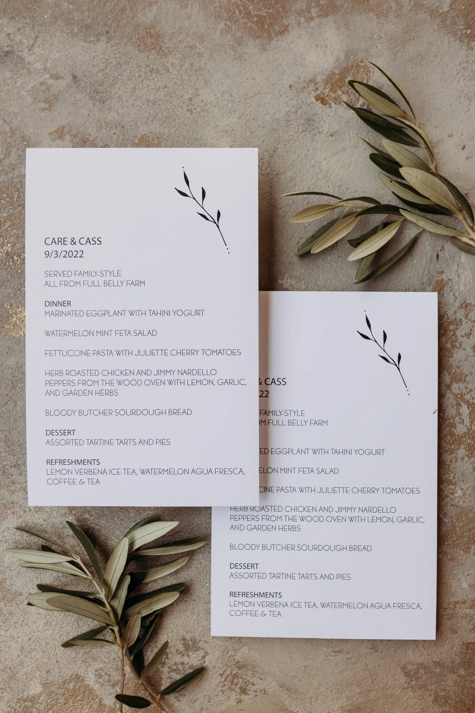 The incredible flowers everywhere. There were flowers thrown after the ceremony (instead of rice) and on every table. The fact that they came straight from the fields next to the reception made them even more special. Honestly, the fact that everything really came from Full Belly Farm was really remarkable. Incredible pasta made with flour milled near by, veggies roasted in the pizza oven next to the dance floor, and a whole melon bar fresh from the farm that morning. It felt personal and almost familial in its intimacy and closeness. I (Carolyn) also have to mention how cool it was to see Cass’s ceramics on the table and art designs incorporated into the menu and paper goods. That was really neat.