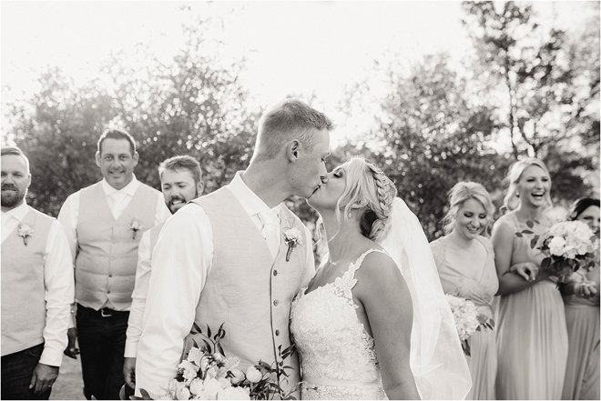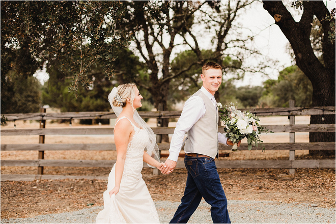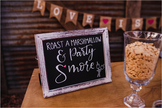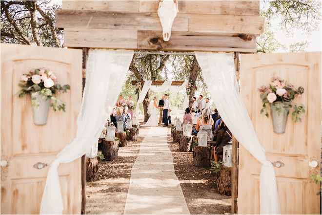 Her favorite part of the rustic-chic celebration was the speeches during the reception, which mixed both emotions and humor. However, it was the first look with Trevor that touched her the most. “Seeing him so emotional was touching,” she says, “because he’s not super emotional normally. Seeing him get teary-eyed was really sweet.”