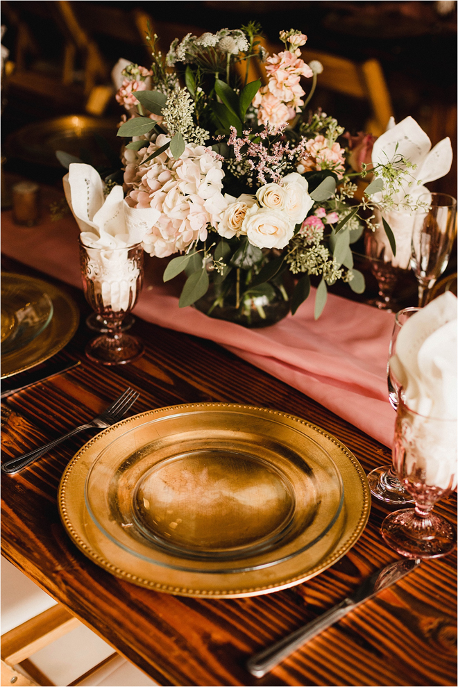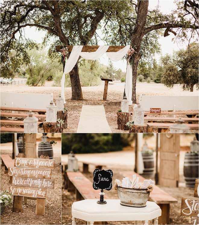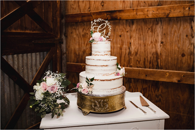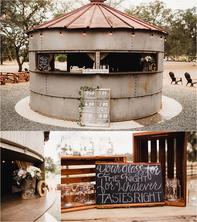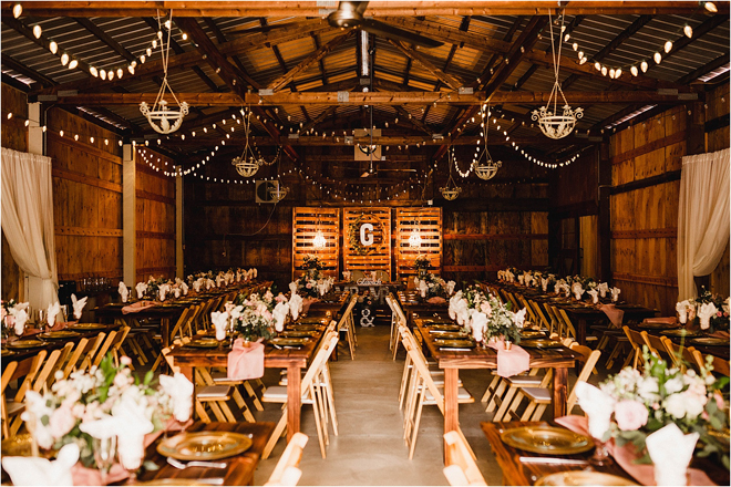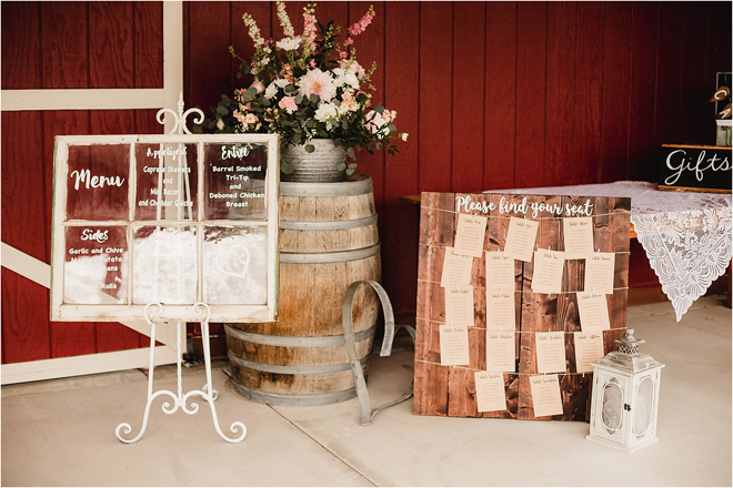 Cassidy says the wedding planning process was surprisingly easy, because their venue handled much of the coordination, logistics and decorations. The couple made some DIY signs for the celebration, chose the table settings and hung elk antlers over the entrance to the ceremony space to bring in a little extra country style. But their venue handled all the other details, which she says helped make the planning process painless.