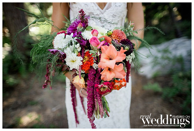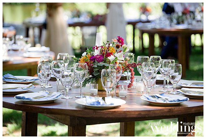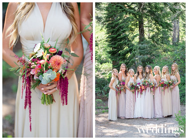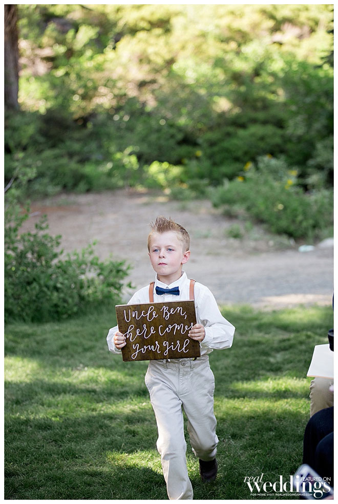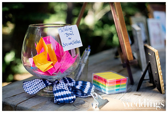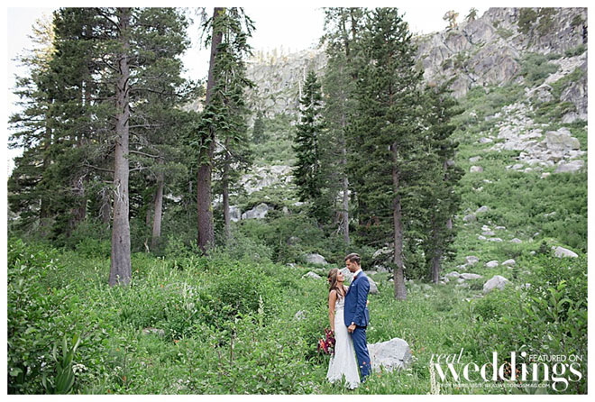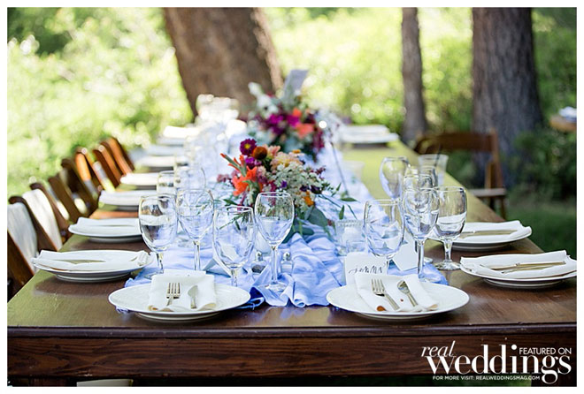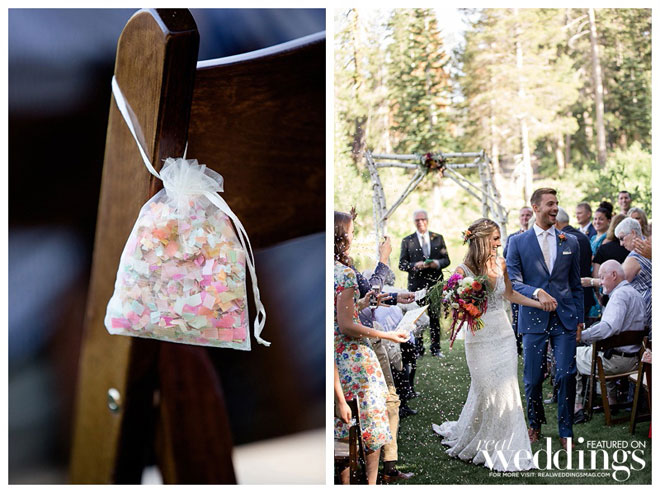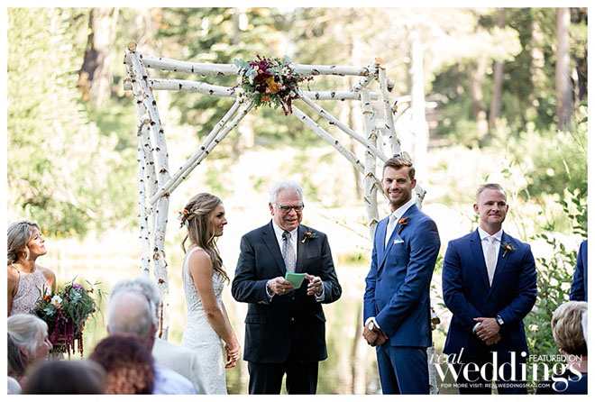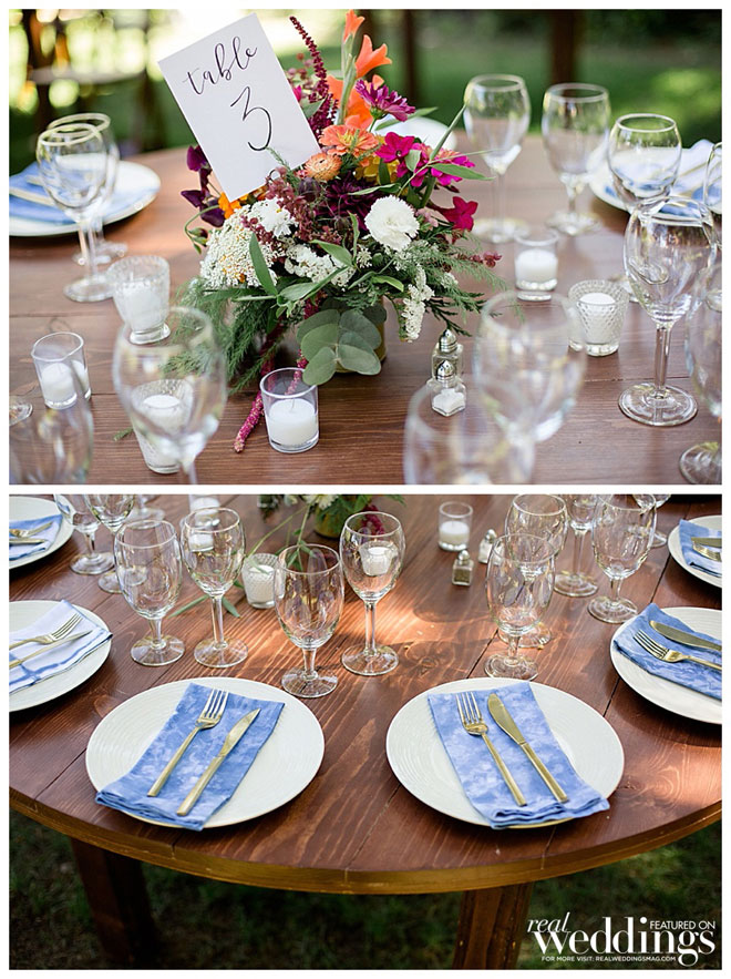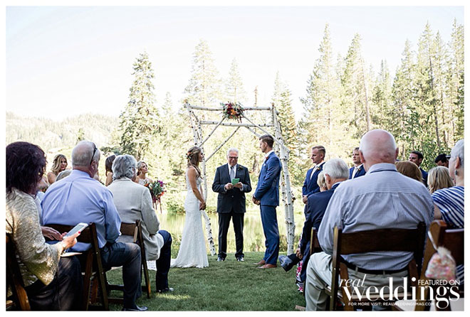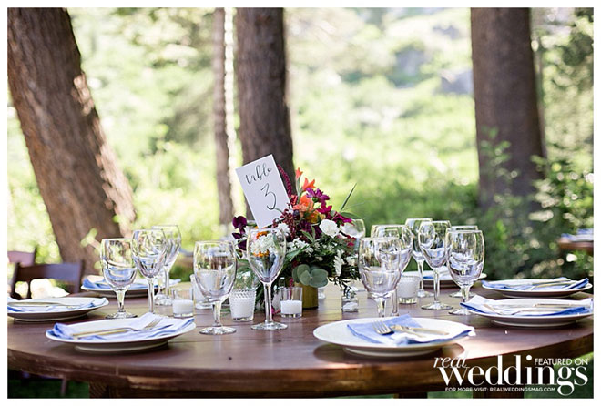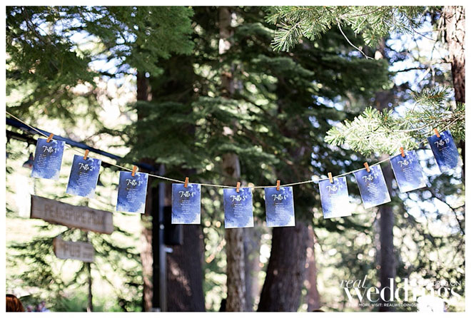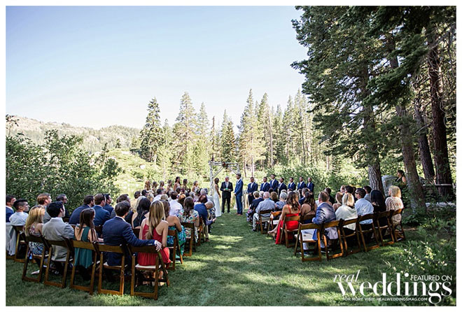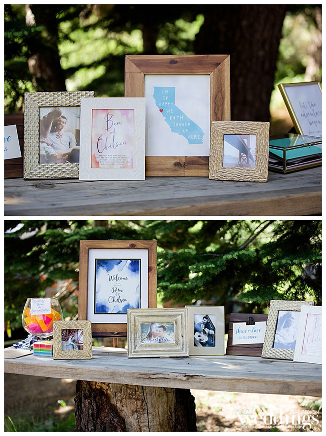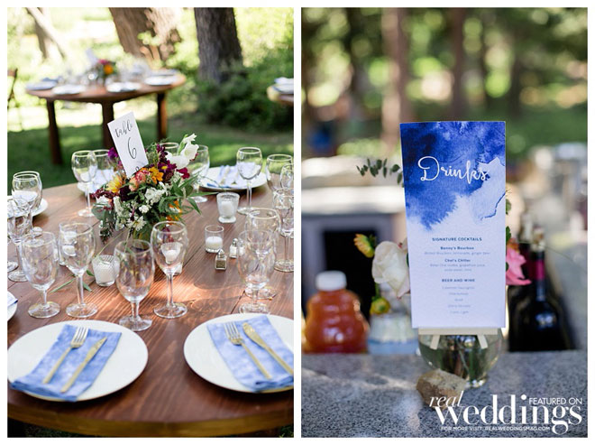 The location was easy to pick: Tahoe already held a special place in their hearts. “Plus Lake Tahoe in the summer is just magical.” They chose White Wolf Tahoe, a private ski resort. “We actually booked it before visiting based on how stunning it looked in pictures!” The wedding was small and intimate but Chelsea added personal touches; from shibori napkins and the calligraphy on the name cards to finding the perfect wooden signs and a unique guestbook. “But our most favorite memory was our vows,” says the bride. “We wrote one set of vows together and read them back and forth. We felt that expressing the same intentions and promises to each other was the most meaningful way to enter into our marriage.”