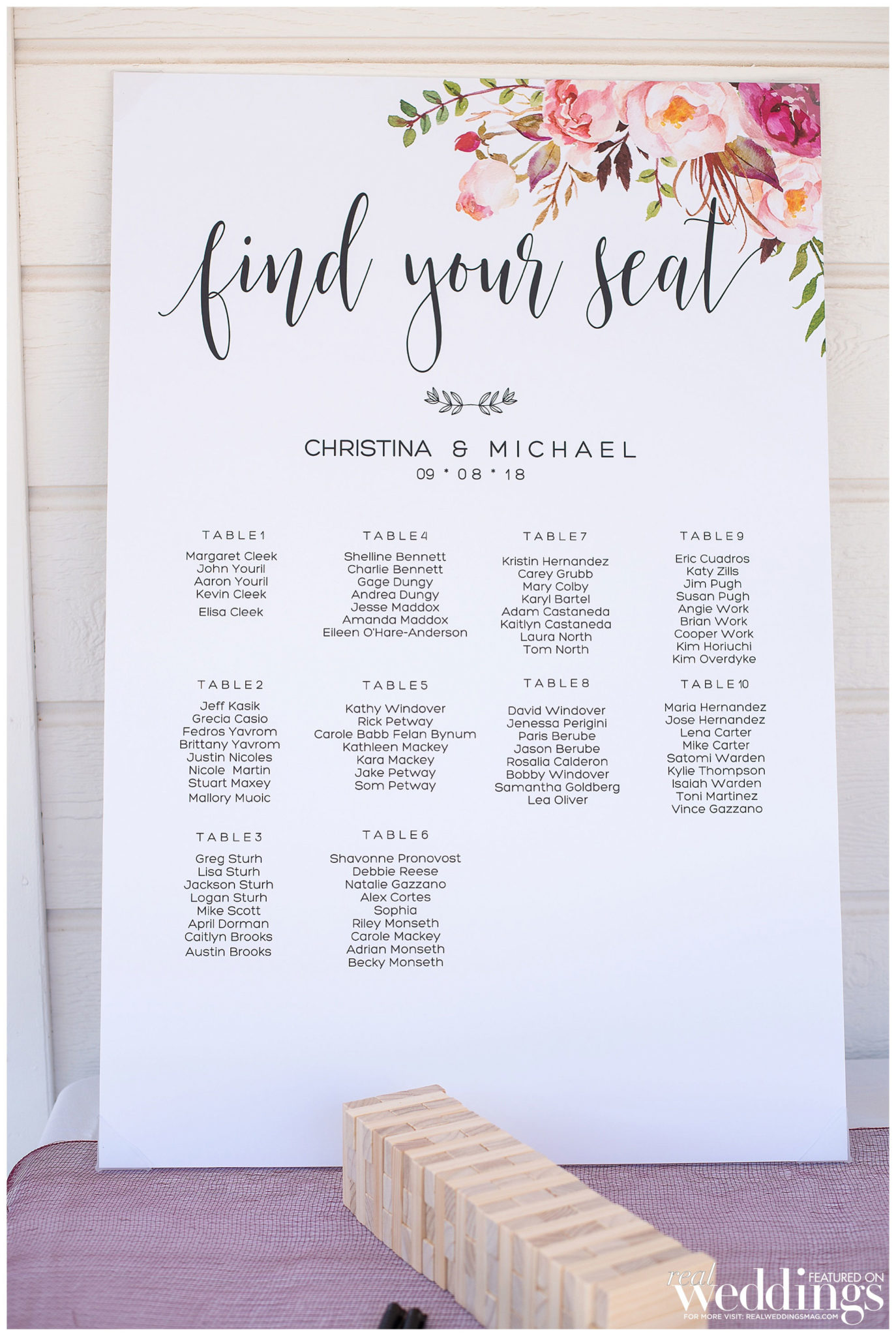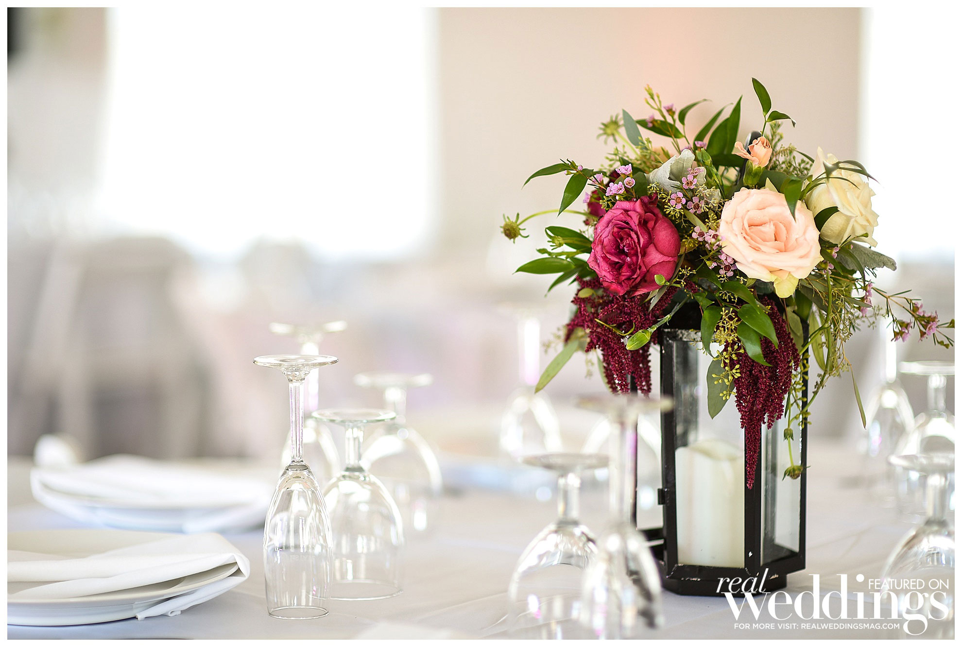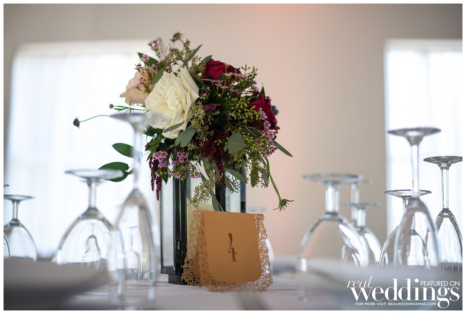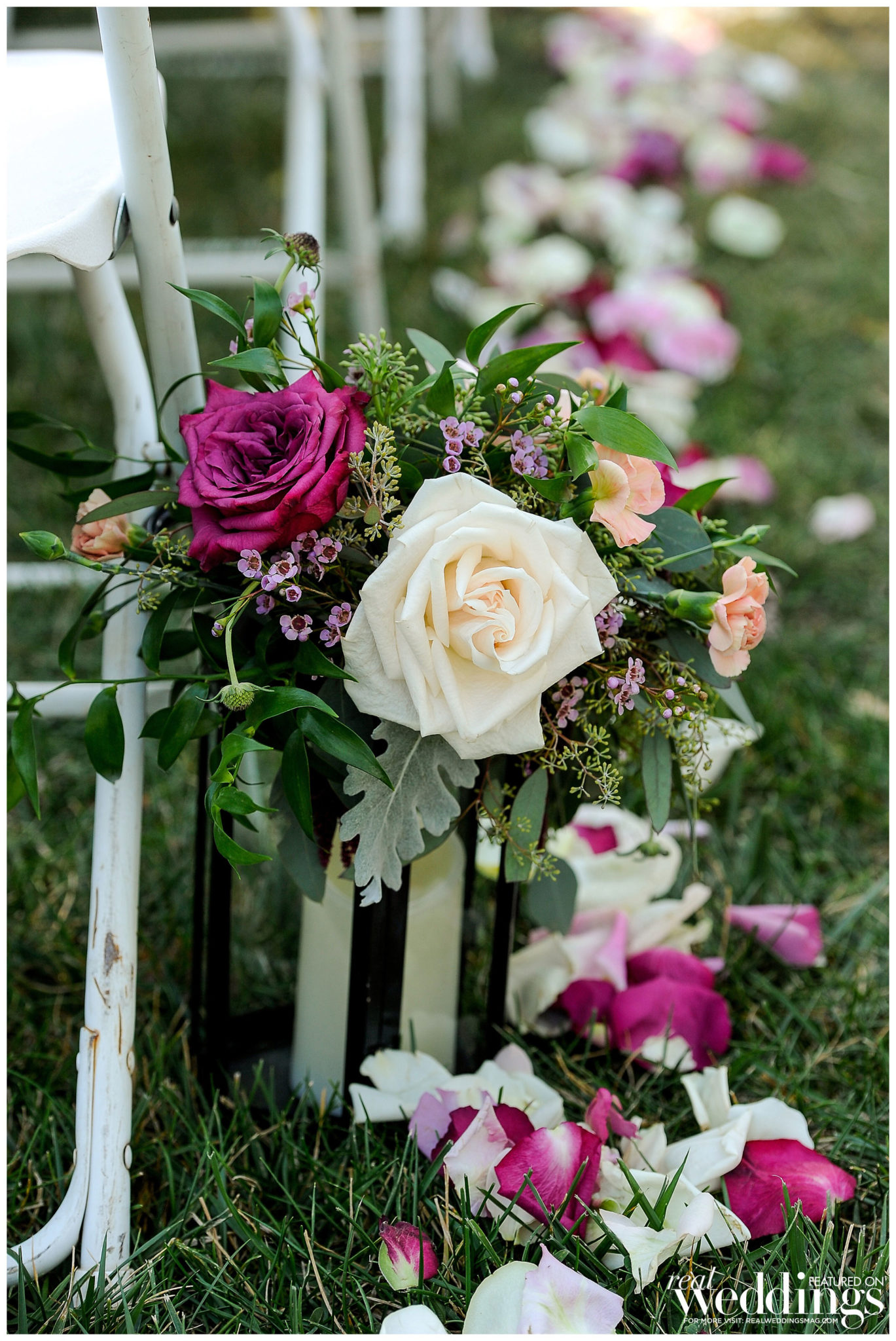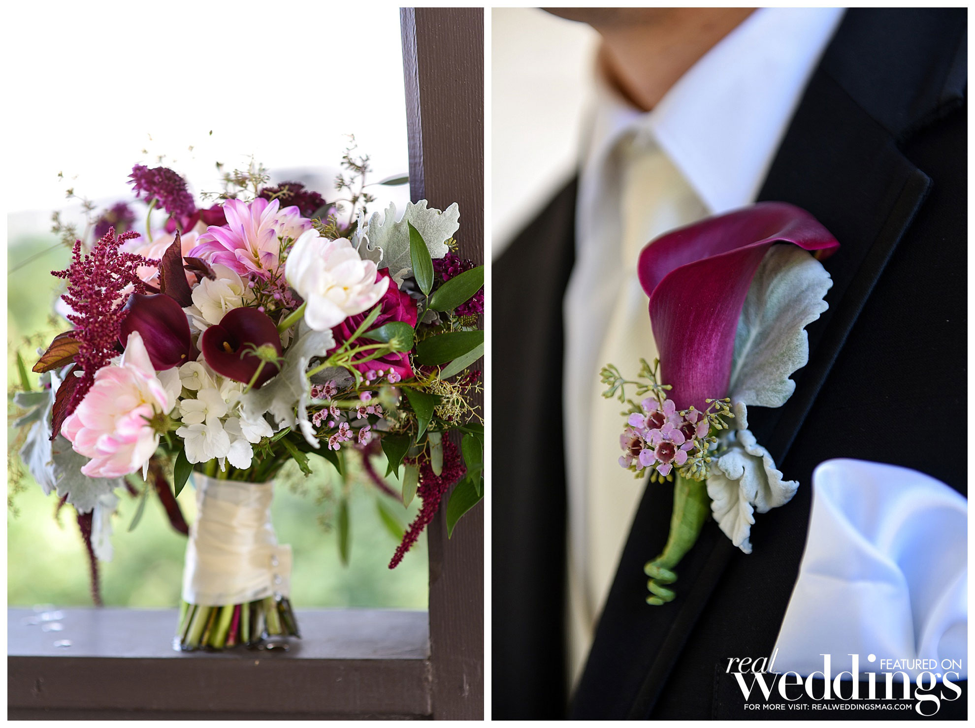 Eighty guests attended the wedding, which had a color palette of purple, maroon and pink, along with greenery to create a classically romantic atmosphere. “It feels like I was in a dream because it all happened so fast and was such a happy and joyous time,” says Christina, who loved her flower arrangements.