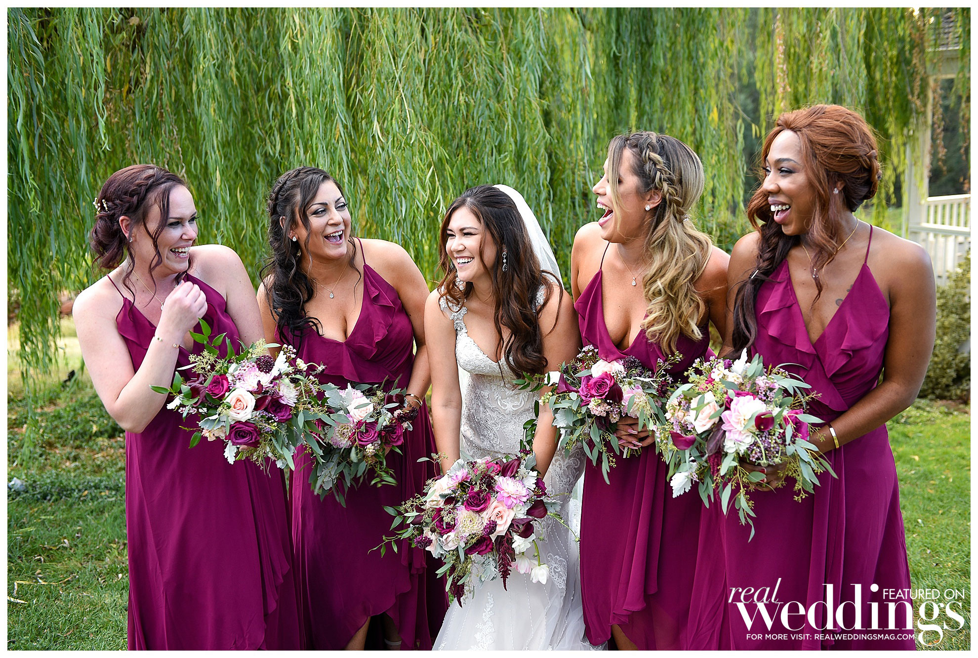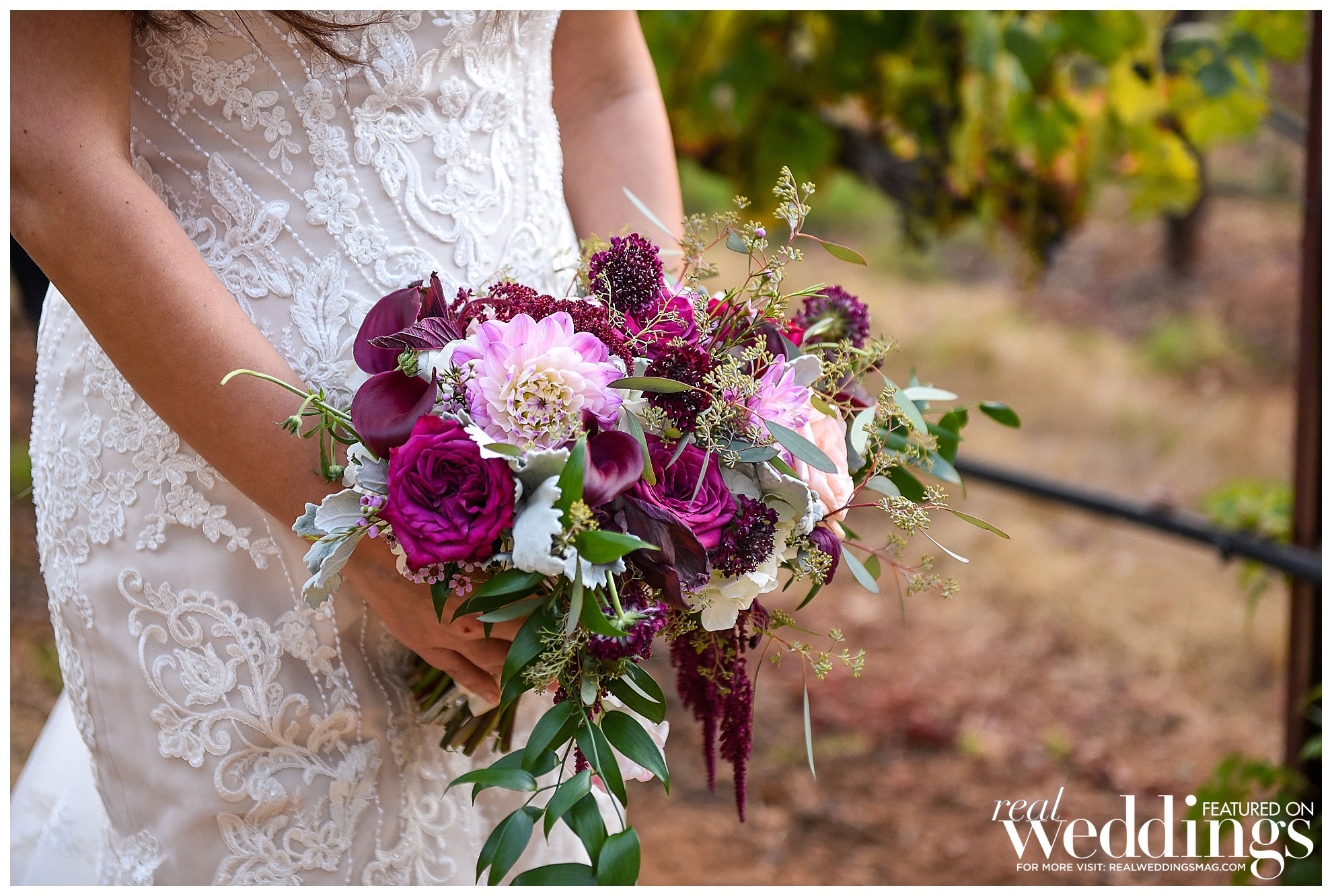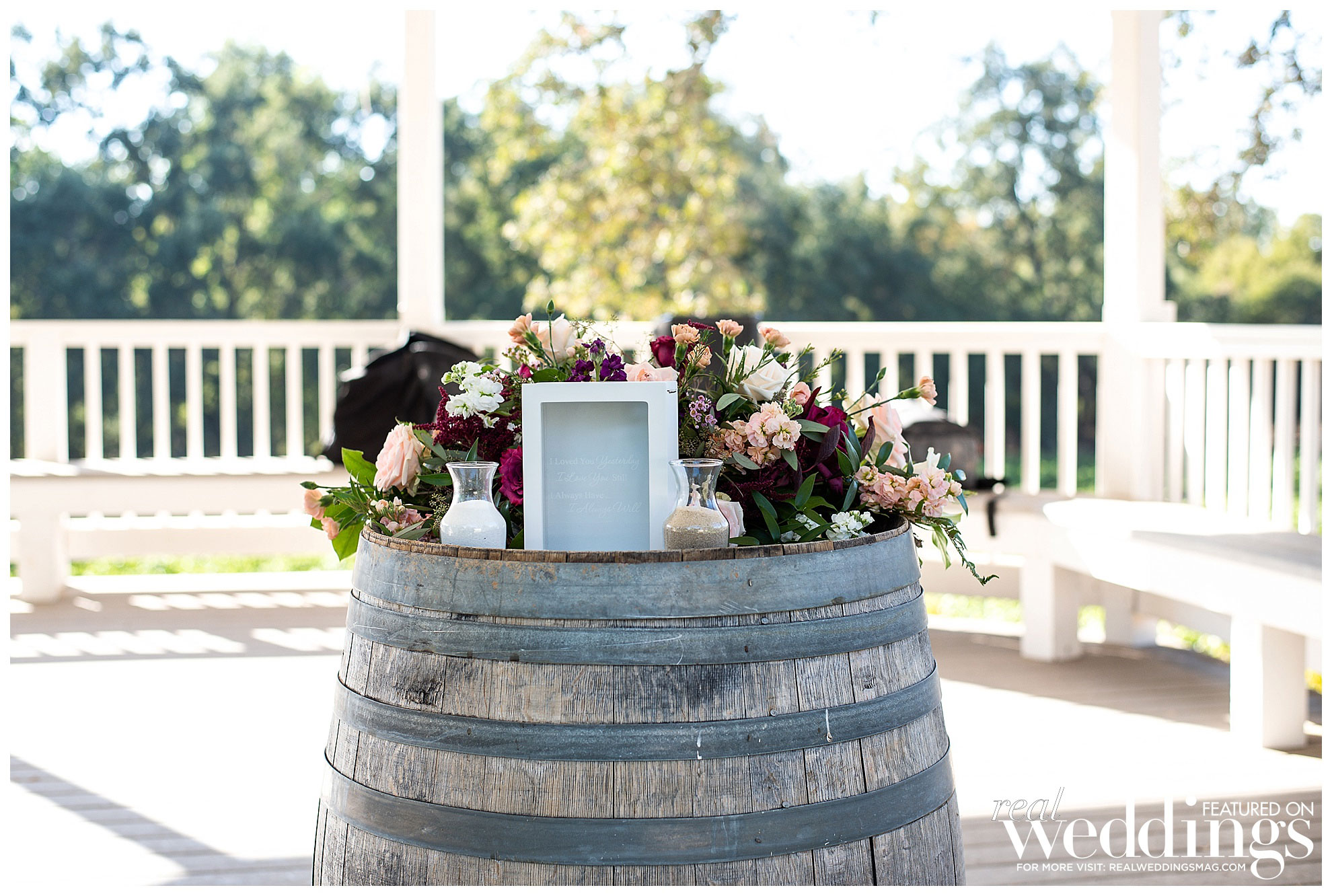 Eventually, their save-the-date cards featured photos of them hiking in Yosemite, and they continued to incorporate nature and scenery into their wedding, which was held a year and a half later at Cielo Estate Winery. “The willow tree and white gazebo where we said our vows was fairytale-like to us,” says the bride. “The location of the winery is just far enough from the hustle and bustle of city life to feel like you are getting away, but close enough to not be overly burdensome for guests to travel to and find a nice place to stay the weekend and enjoy themselves.”