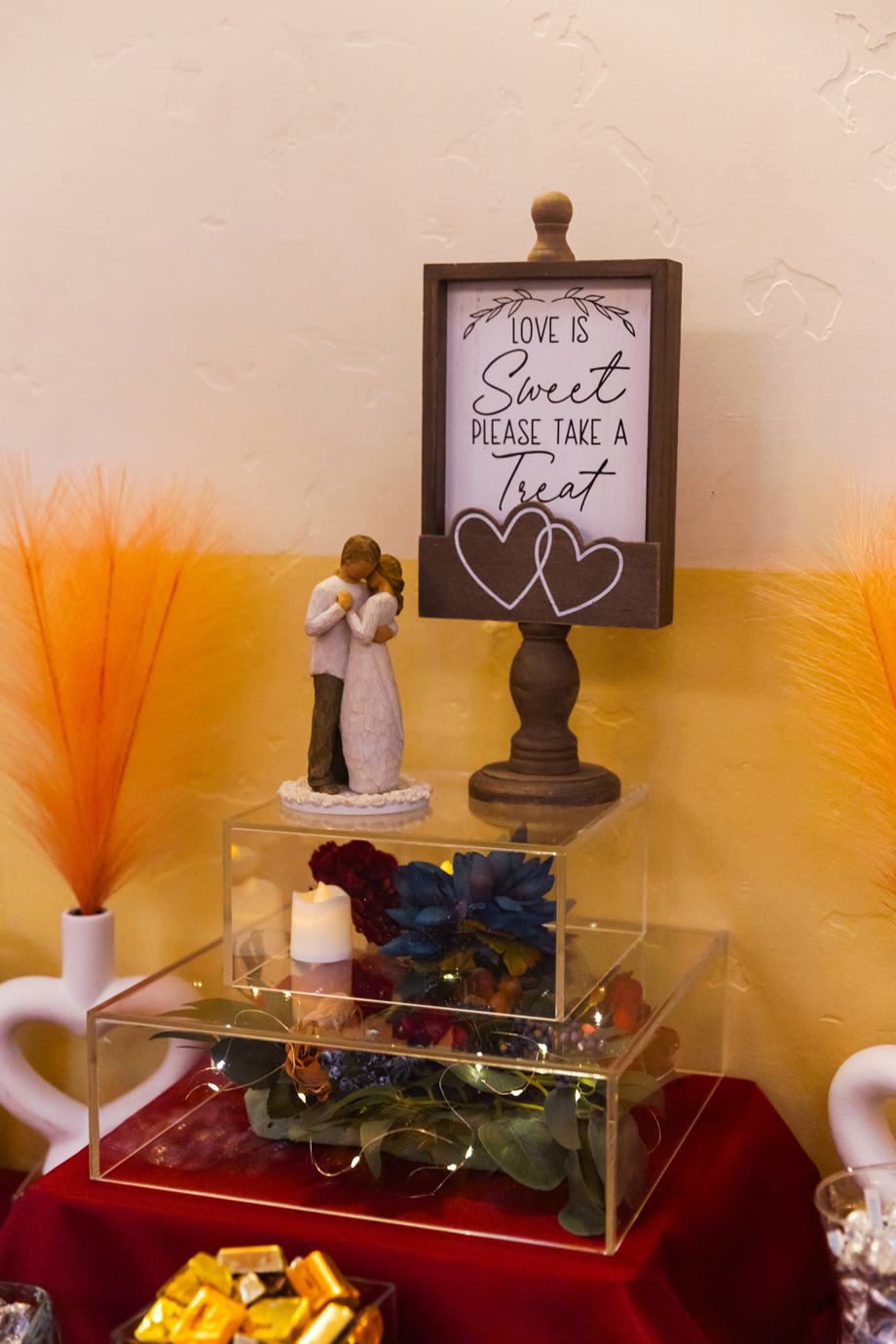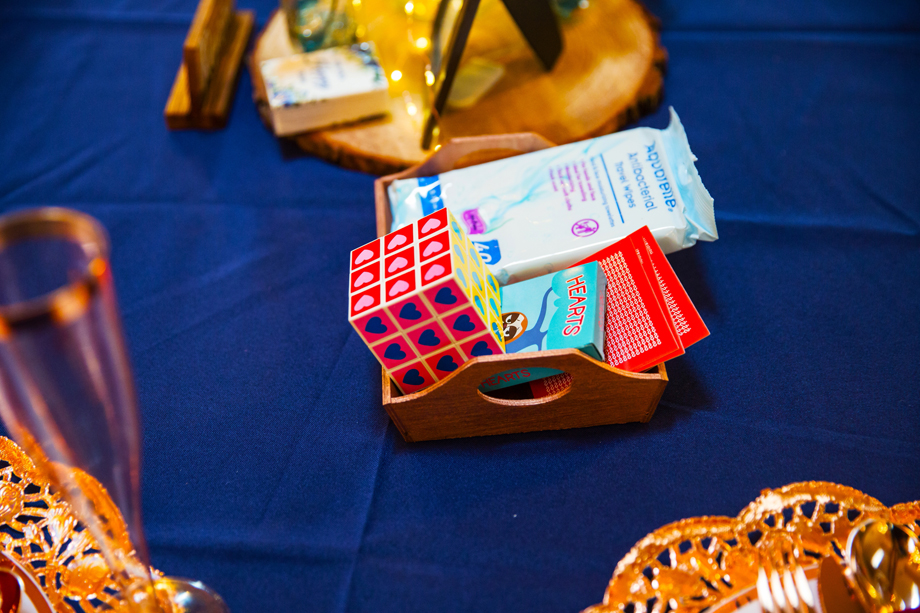 Honestly, I absolutely hate being the center of attention. All I wanted for my big day, was for all our guests to have fun and enjoy themselves. We catered our wedding to all types of people. We have Connect 4, Corn Hole, Coloring, and Dress for the kids and the adults who are kids at heart. We even made sure to have some kid friendly sack meals (applesauce, juice box, chips, pbj) for the picky eaters who didn’t want the tacos we were serving. At each table, we had wet wipes for guests to use. We also had a few table topics conversation cards and fidgets toys for the guests to play with. Speeches at weddings can be so long and hard for both adults and children to sit through. Having distractions at each table was a huge help.