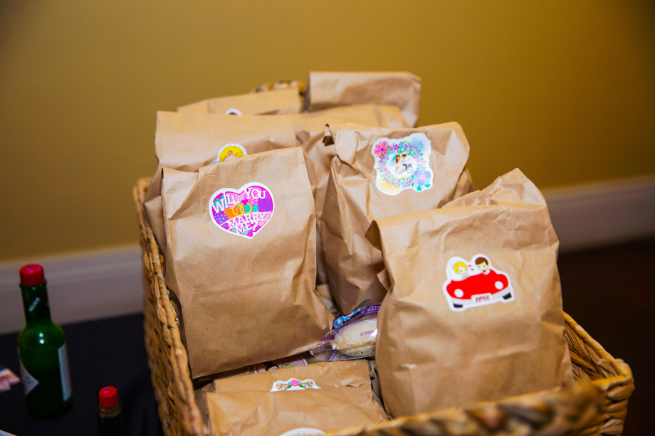 The planning was definitely stressful. My mom was my lifesaver throughout the whole thing and spent countless hours helping me get organized. Since we knew we had limited time to set up and get ready at the venue, we had large Costco size tots organized and labeled for each table so it was a quick grab a tote and help set it up kind of system.