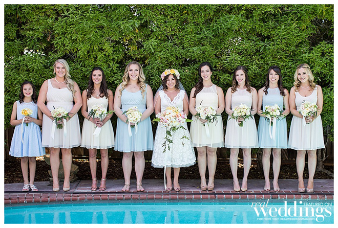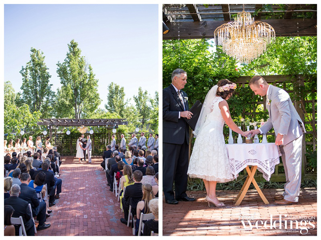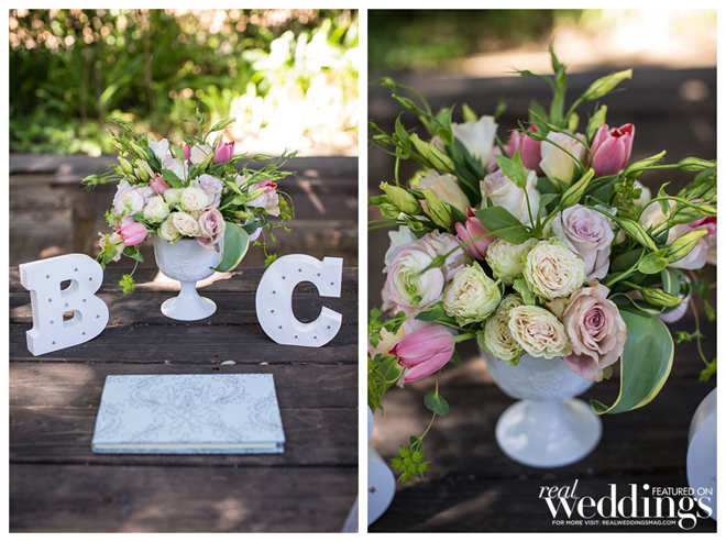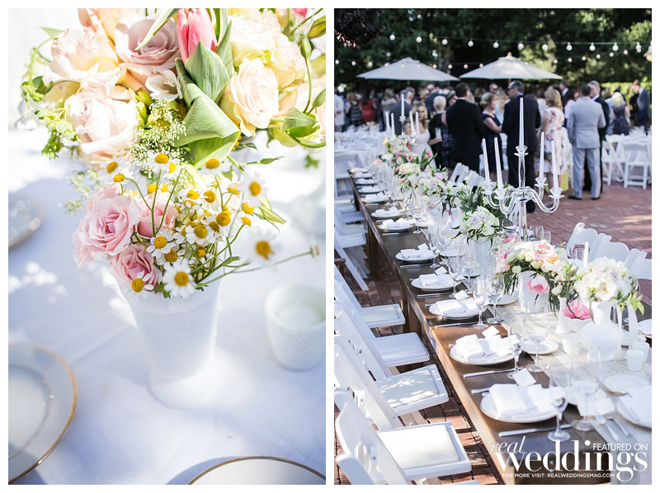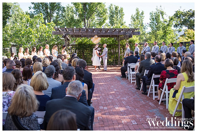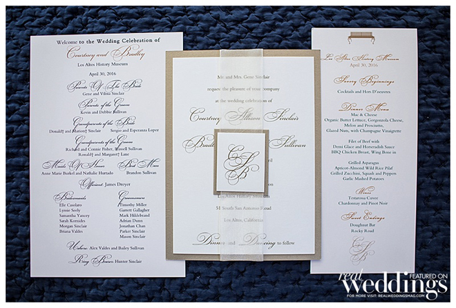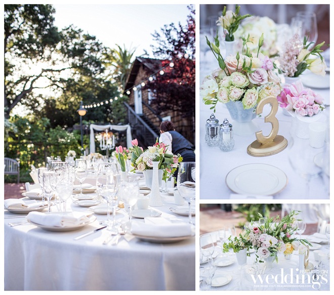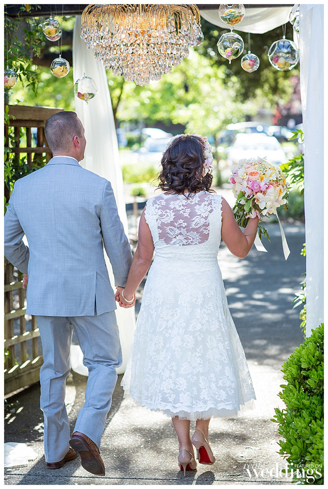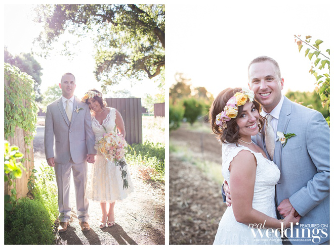 The couple wanted a spring wedding with a local, home grown garden feel. They married twice—once in an intimate, Friday chapel ceremony for immediate family and the wedding party at Saint Simon Catholic Church in Los Altos, and the next day in an outdoor ceremony and reception in front of 180 guests at the Los Altos History Museum. Courtney says she was “channeling Audrey Hepburn in Roman Holiday” in her short, lace dress.“I felt just like a princess,” she says. “It was the most comfortable thing I’ve ever worn.”