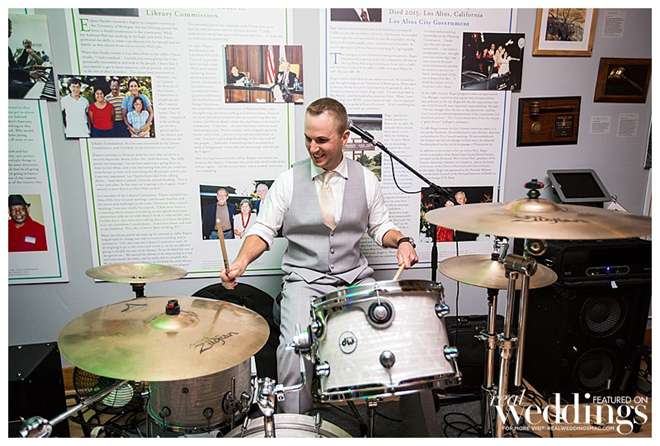 The celebration also included a musical performance from the groom. Brad played drums on two songs halfway through the band’s second set. “The crowd went wild,” says Courtney. “Everyone was on the dance floor screaming and cheering and I was so proud to see him up there.”