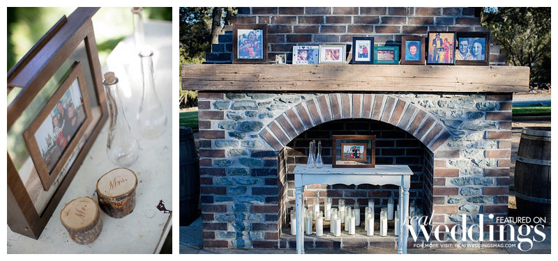 The reception was at the white barn on the property. The couple displayed family photos on an outdoor mantel; a sentimental touch.