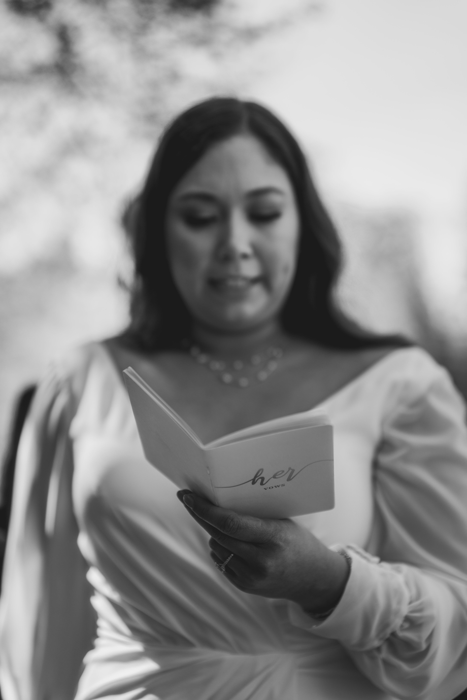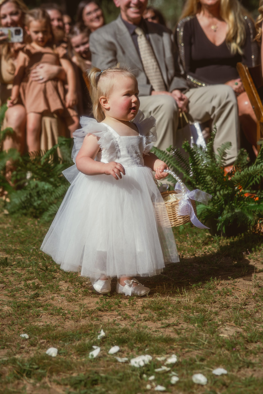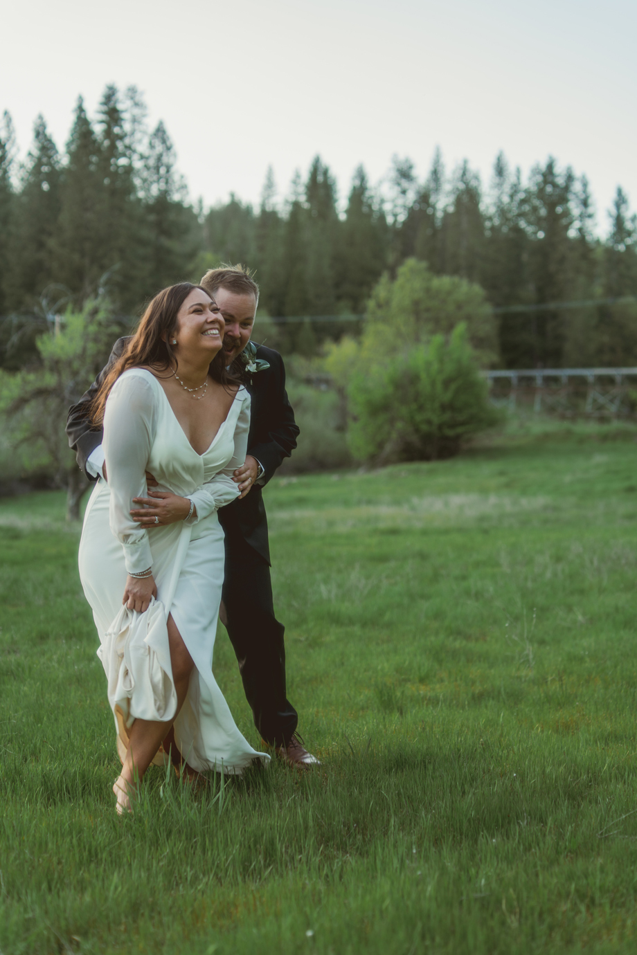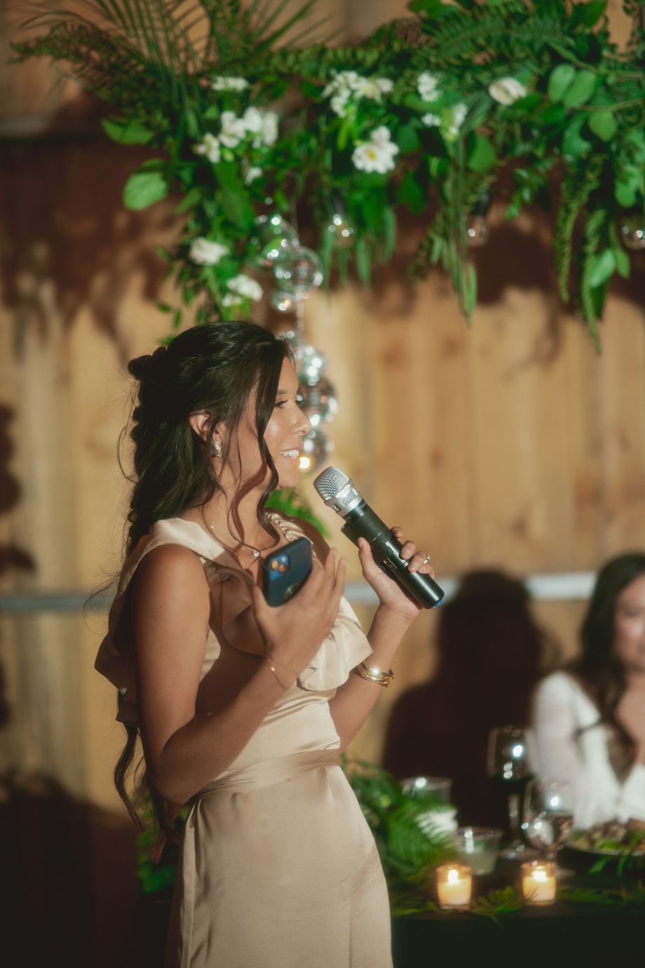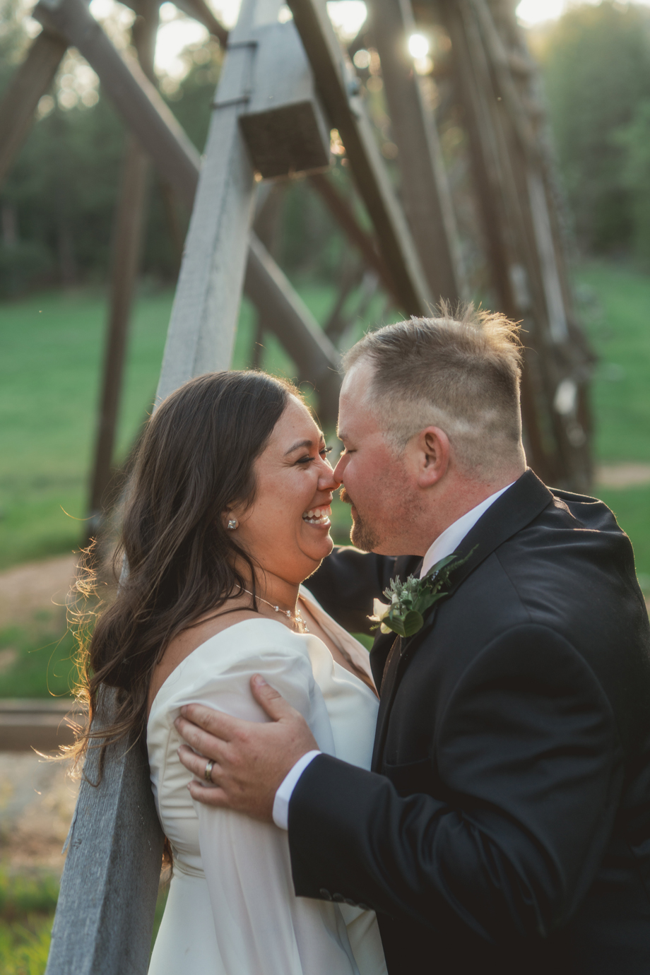 While I was hiding inside of the barn before the ceremony started, I could hear our bridal party on the other side of the barn door. Right when the music started, I heard one of my bridesmaids go, “Oh no, oh my God!” And another saying, “It’s fine! Just go!” I had no idea what happened, and as it turned out, one of my bridesmaid’s dress ripped in the back—but she totally handled it like a champ, barely anyone noticed, and it became a funny thing to laugh about after.