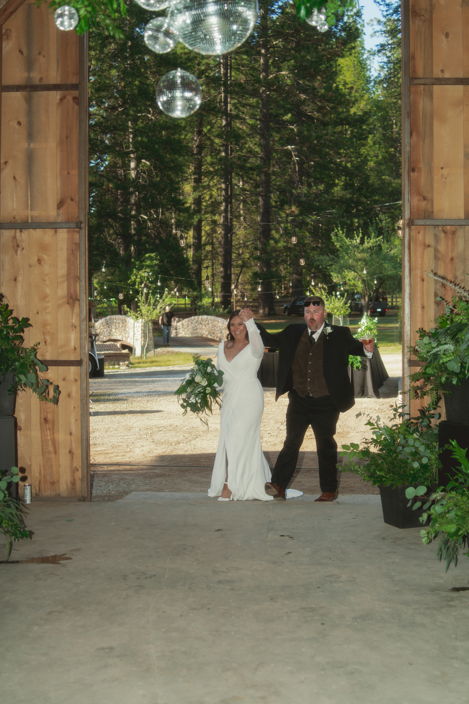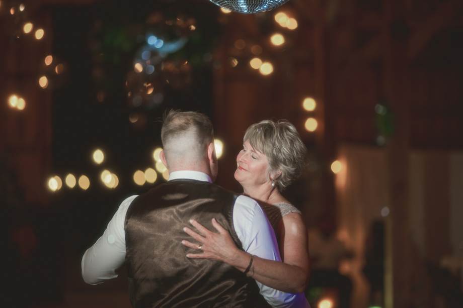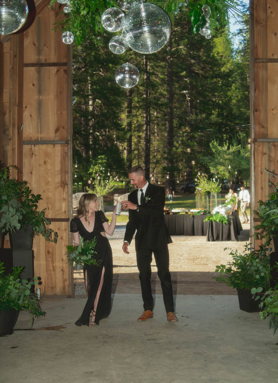I always knew I wanted my wedding to be at The Bennett Barn! For the most part I grew up in the neighborhood where the barn was and it’s something I’ve always wanted since I was a kid. We’ve had neighborhood Christmas and Fourth of July parties there and it’s truly the most beautiful property. When it came down to asking the owners, Rod and Patty Bennett, to have our wedding there, I stayed up late and poured my heart and soul into a letter. I knew and expected it to be beautiful because the barn alone is stunning, but with the added greenery and disco balls it completely blew my mind. Making the day even more special, my mom is friends with the people who live in my childhood home, and I was able to get ready in the house I grew up in.