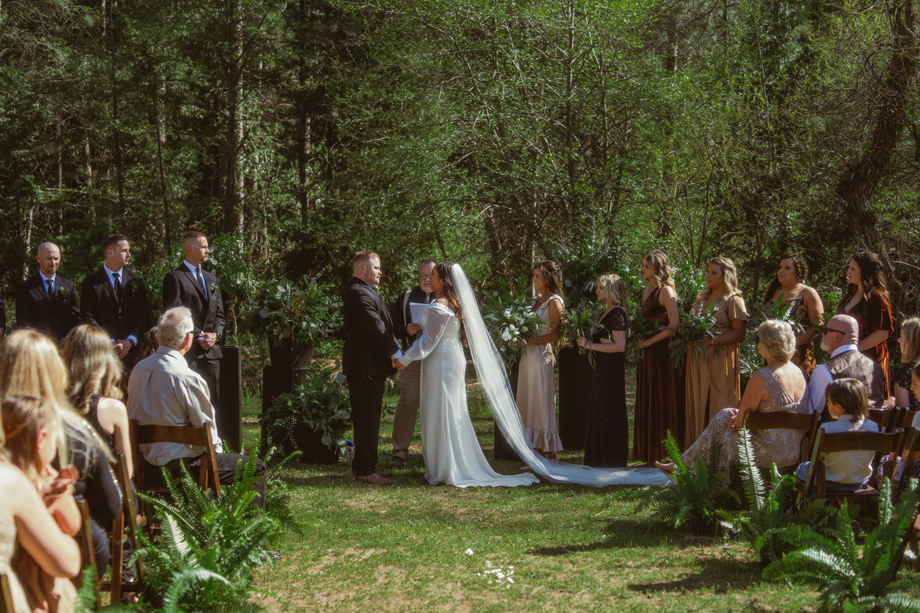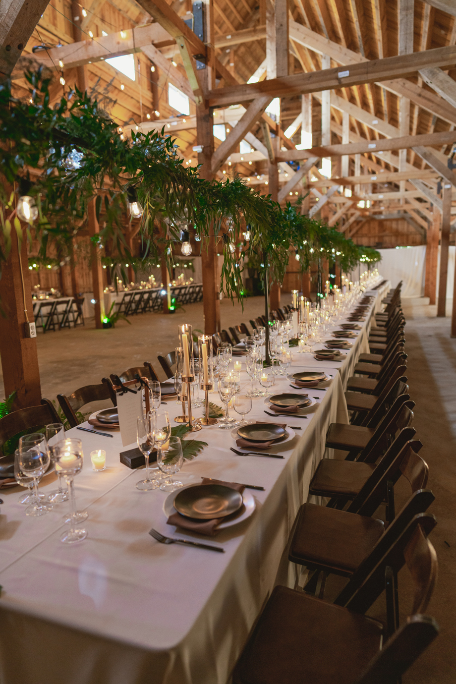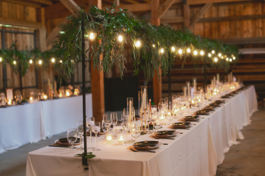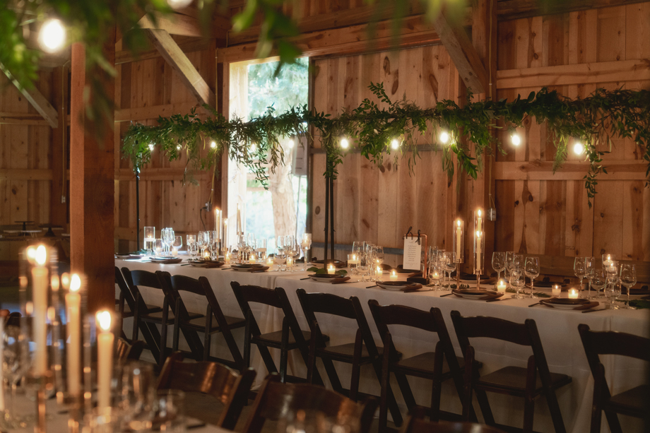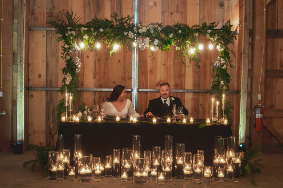 I always knew I wanted my wedding to be at The Bennett Barn! For the most part I grew up in the neighborhood where the barn was and it’s something I’ve always wanted since I was a kid. We’ve had neighborhood Christmas and Fourth of July parties there and it’s truly the most beautiful property. When it came down to asking the owners, Rod and Patty Bennett, to have our wedding there, I stayed up late and poured my heart and soul into a letter. I knew and expected it to be beautiful because the barn alone is stunning, but with the added greenery and disco balls it completely blew my mind. Making the day even more special, my mom is friends with the people who live in my childhood home, and I was able to get ready in the house I grew up in.