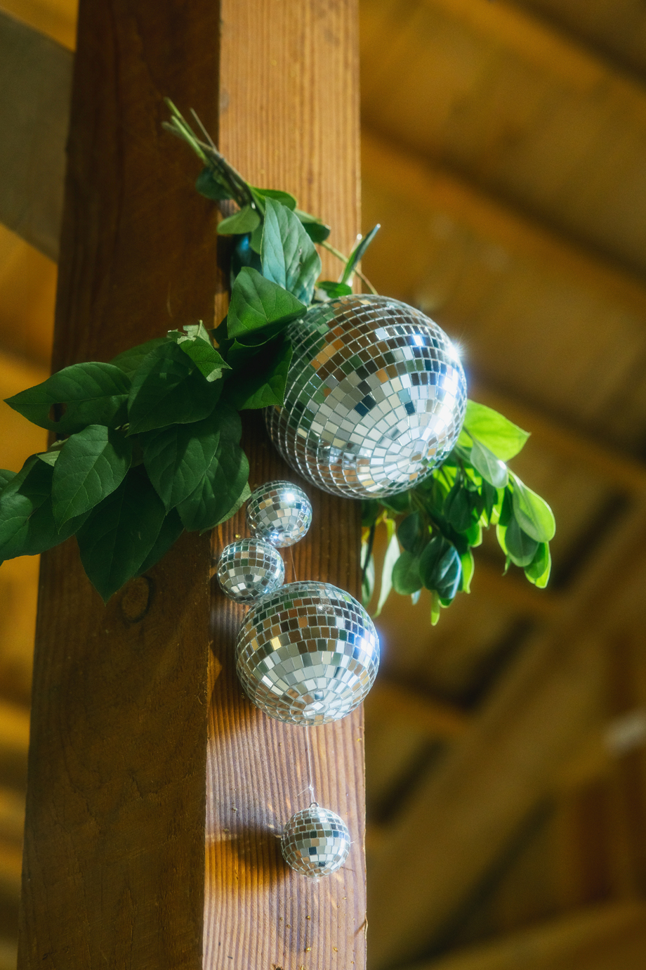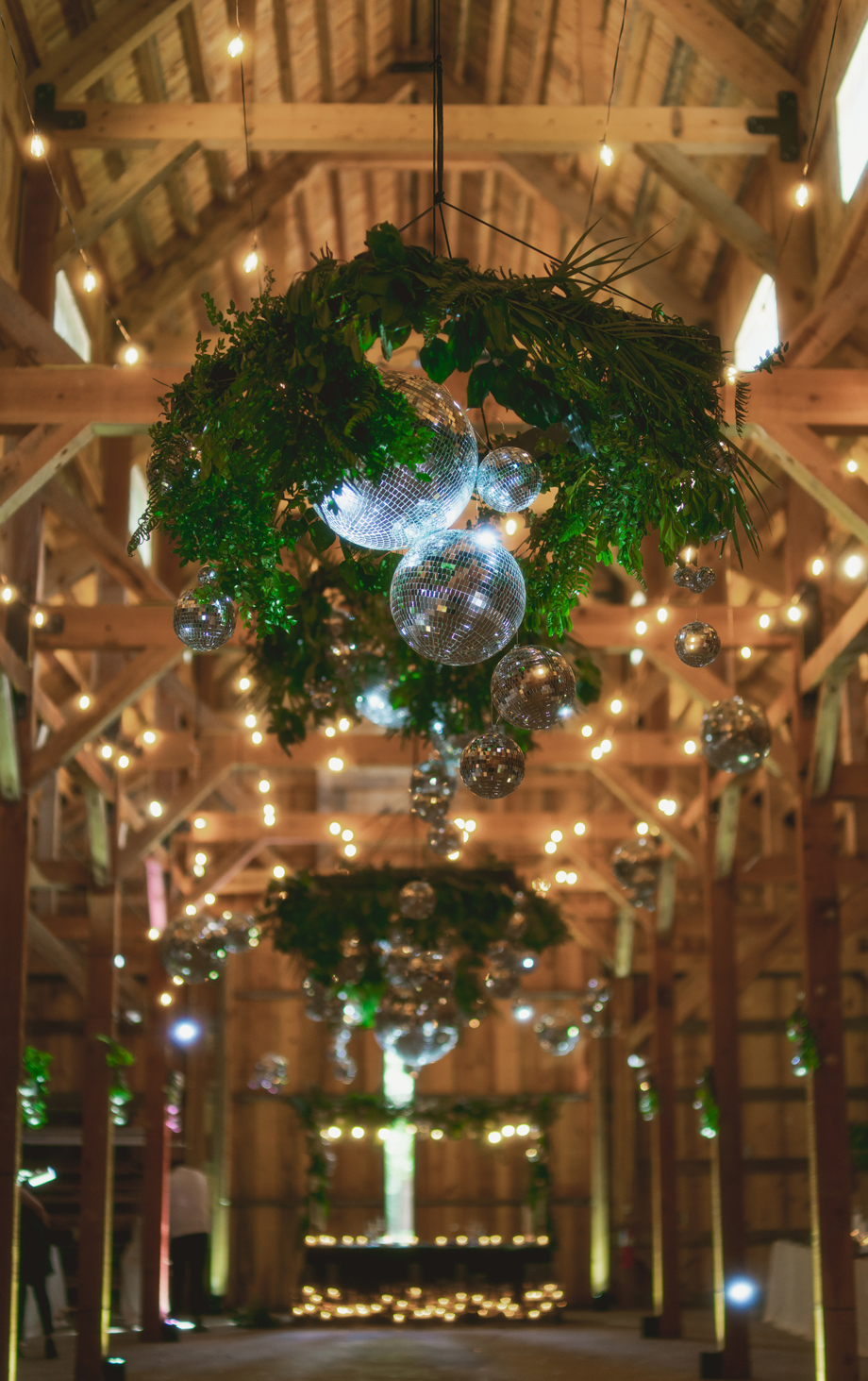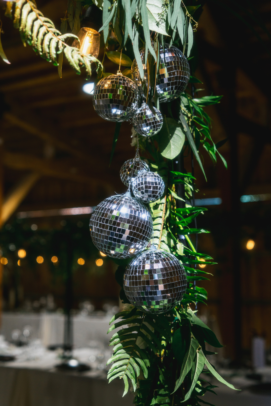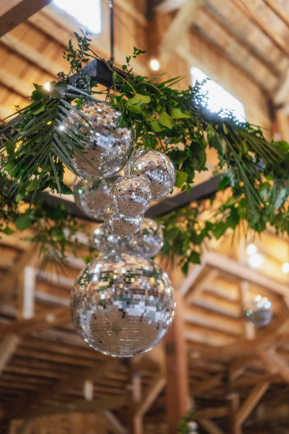 Definitely the disco balls! People talk about it all the time and how beautiful they looked with the greenery and the structure of the barn.