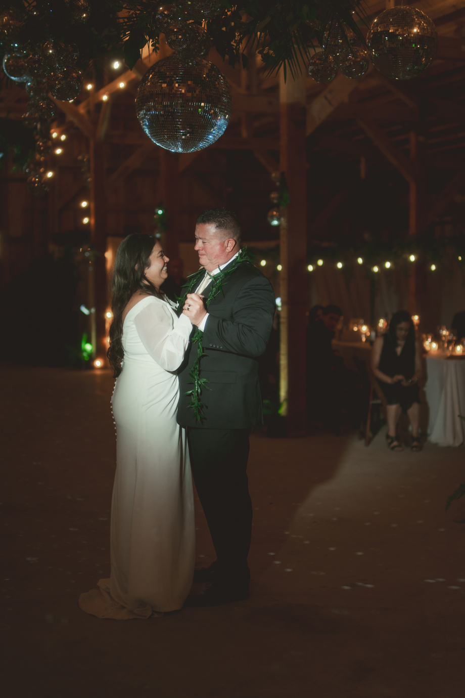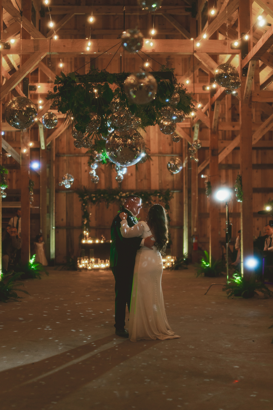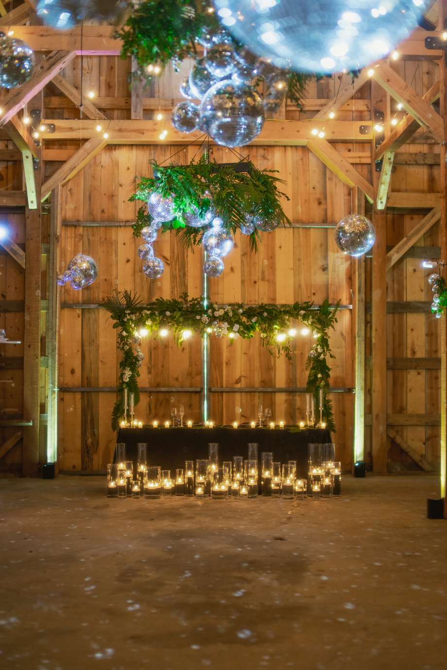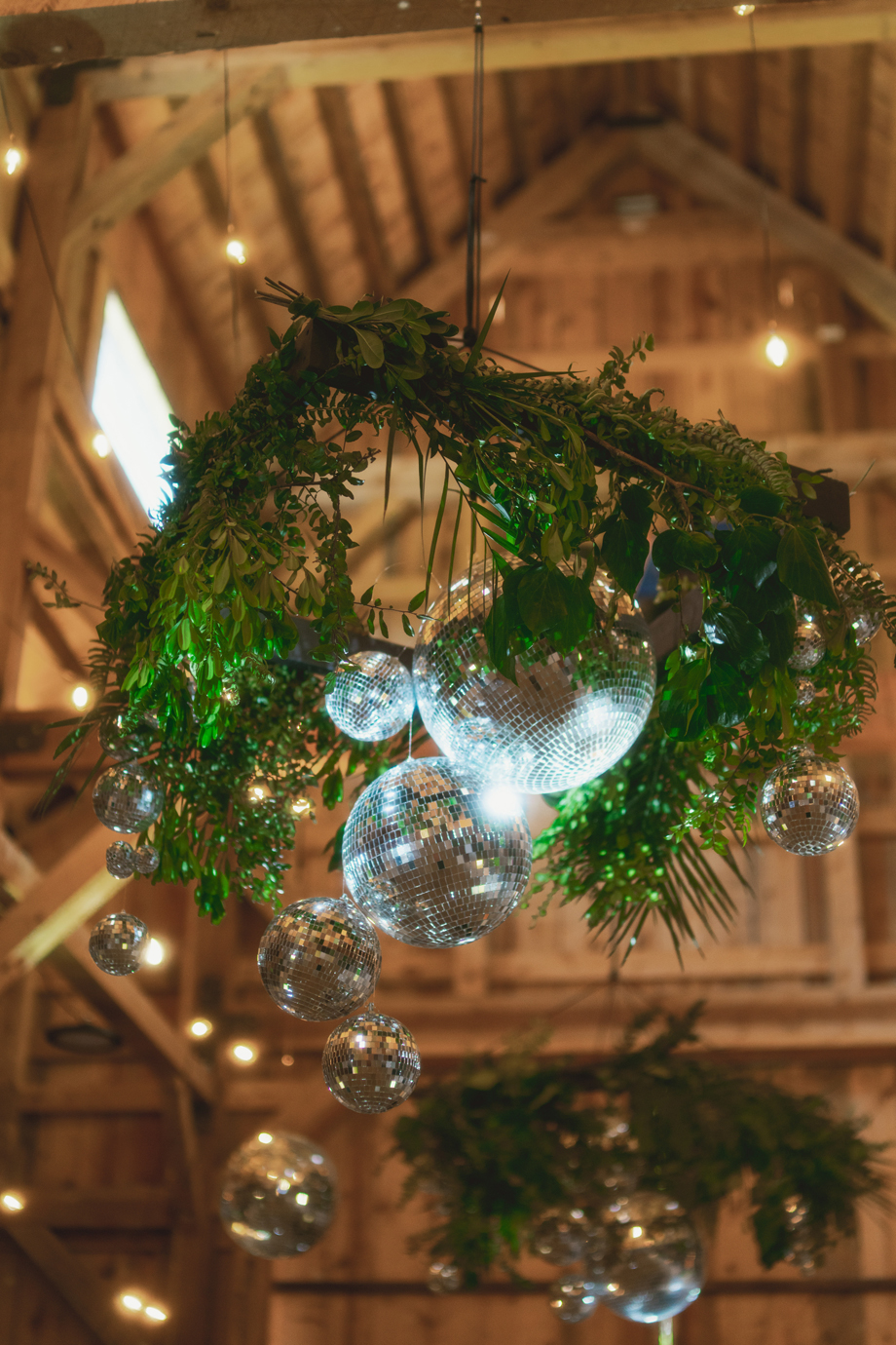 Definitely the disco balls! People talk about it all the time and how beautiful they looked with the greenery and the structure of the barn.