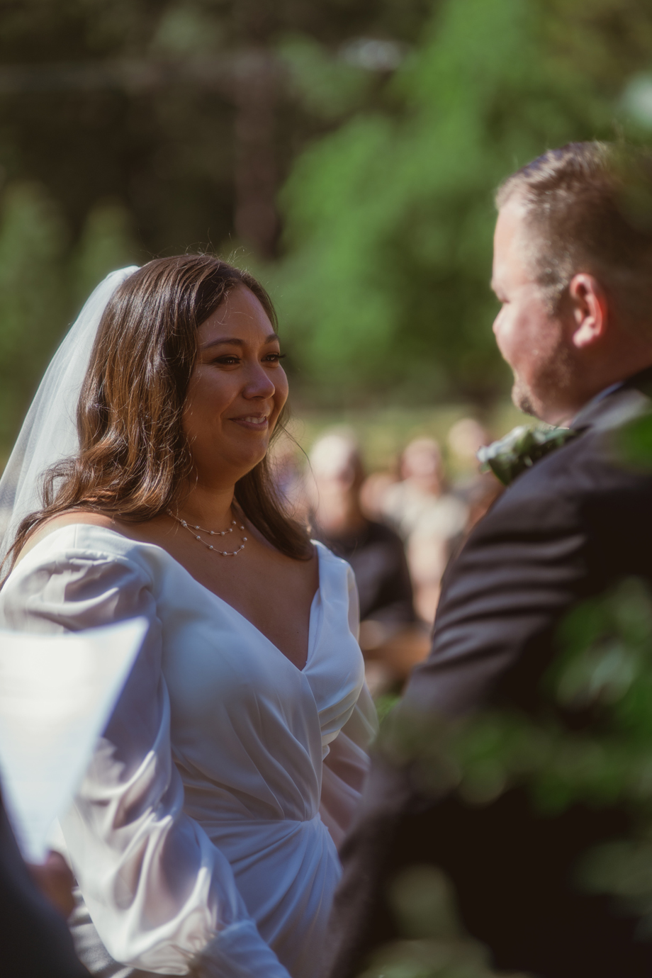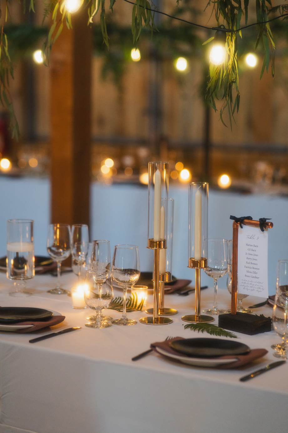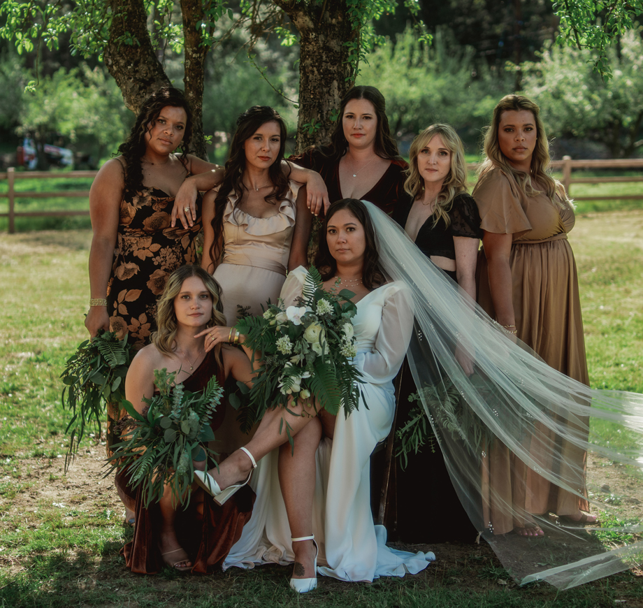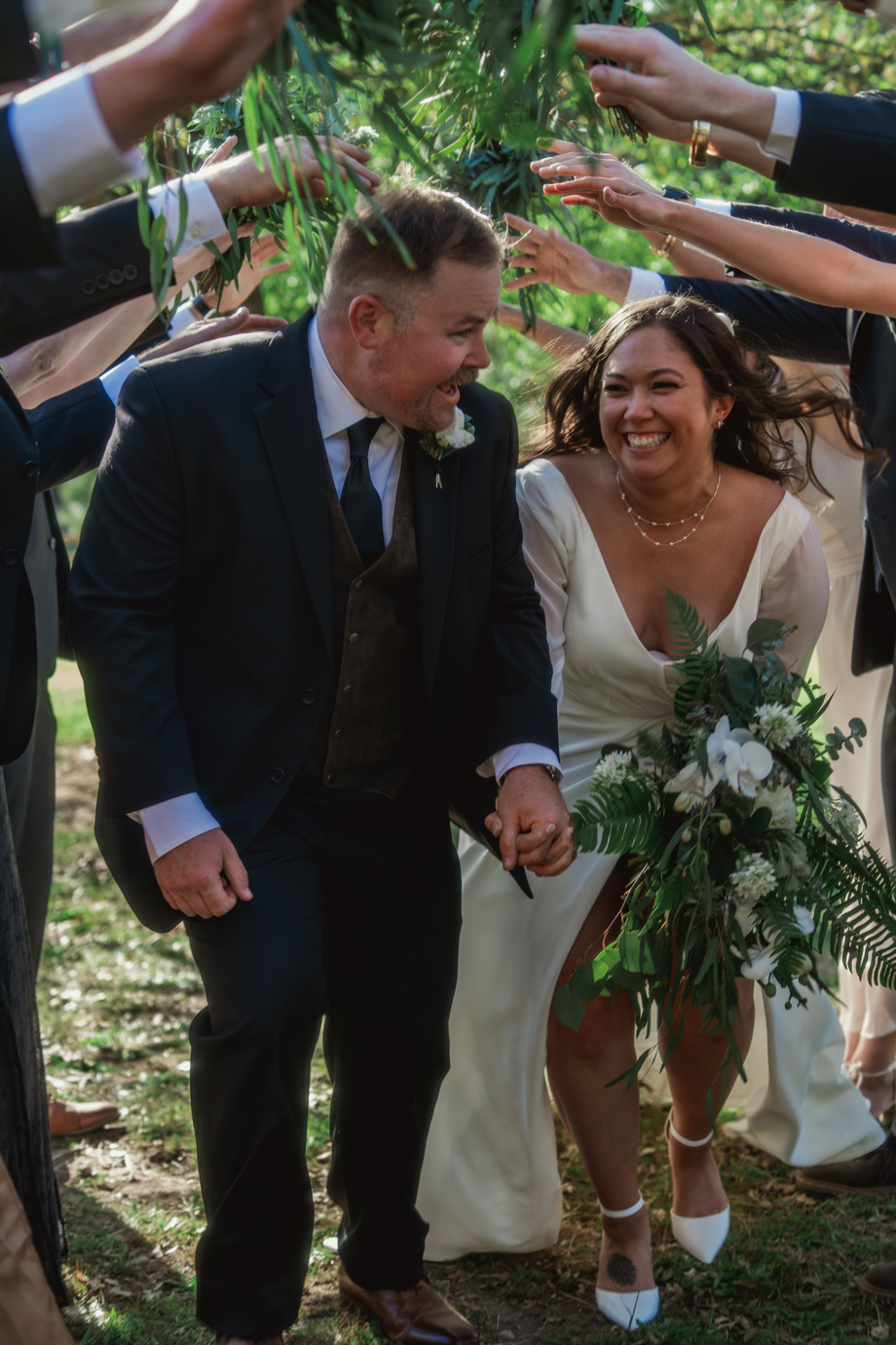 Aaron LOVES The Lord of the Rings and wanted to incorporate it somewhere, so he picked out quotes he loved from the movies and we added them to our table signs. Also, part of our dress code was requesting guests to wear our wedding colors (brown, copper, champagne, black) to really have the green in our florals stand out and for cohesive photos. It turned out so great!