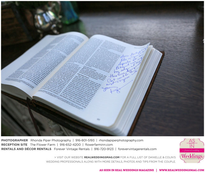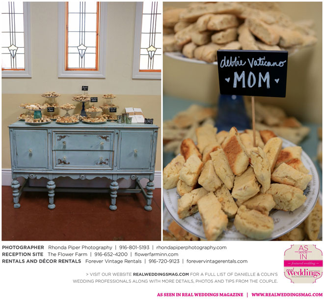 Our Families: Our families were truly everywhere during the day, from the beautiful confection of a cake that was designed and created by Colin’s grandma, the sweet biscotti bar (each of our mothers and grandmothers baked our own family’s version of the special Italian recipe) to the personalized mini bottles of olive oil (honoring their Italian roots) that were given as favors and the beautiful leather bound bible that we chose to use as our guest book-we even used the first set of furniture that Danielle’s parents purchased as a newly married couple for seating in the beautifully designed cigar and whiskey bar.