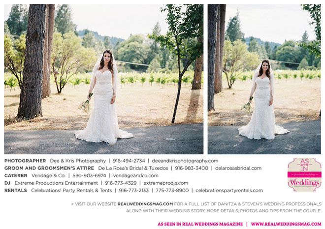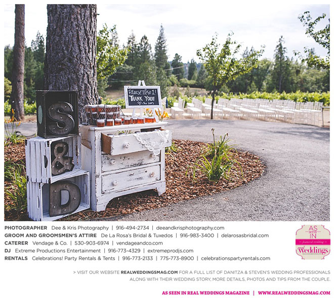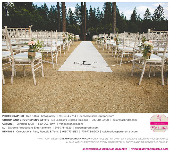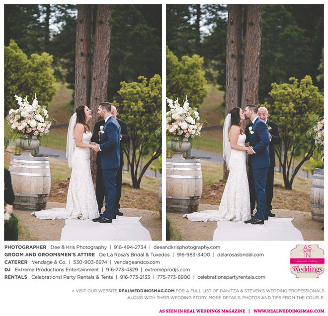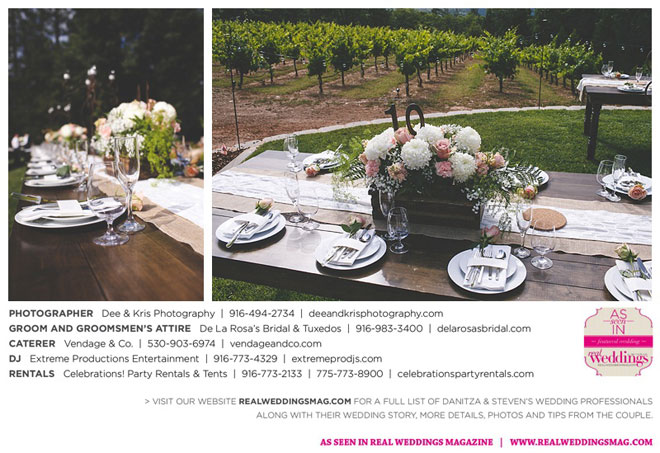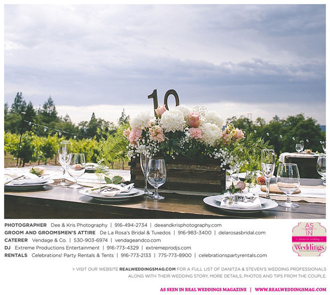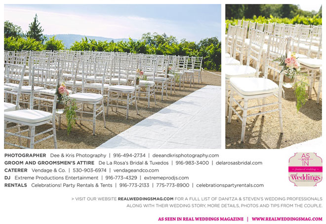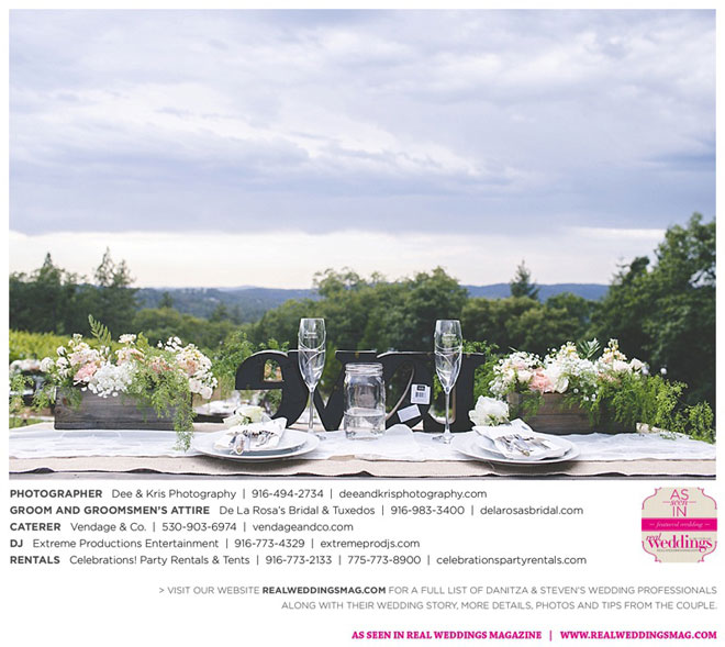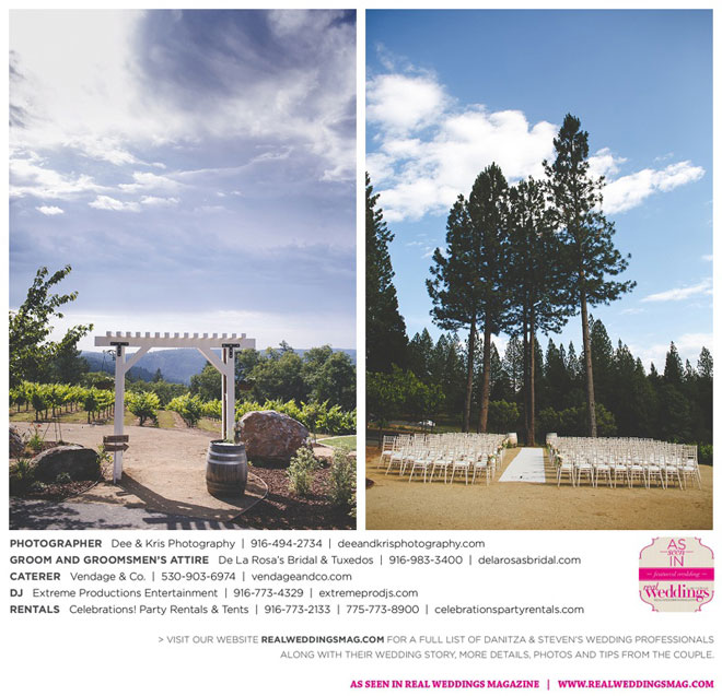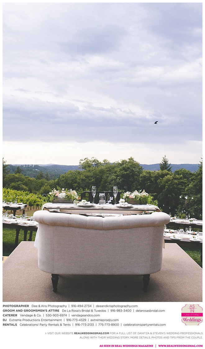 Fourteen months later, in early summer, the wedding day arrived after much expert planning. “As an event coordinator and having dreamed of my wedding day for years, I definitely had high expectations and particular ideas for the day,” Danitza explains. She envisioned each aspect of every moment, and did the work to make it happen. The venue was meaningful, too—close friends of Danitza’s family had recently bought a vineyard property among the rolling hills and plentiful trees of Camino.